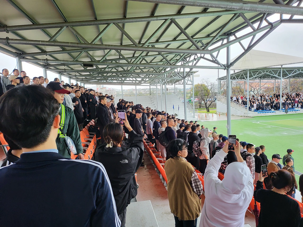 오후 1시 50분 이제는 아들과 이별해야 할 시간이다. 그런데 아침부터 내리기 시작한 비는 그치지 않고 계속 세차게 내린다. 연병장 근처에 도착하니 우천상황으로 연병장에서 입소식을 할 수 없는 상황이다. 연병장 스탠드에는 구역별로 입소생들이 모여있다. 가족들은 입소생들과 떨어진 별도의 좌석에 앉도록 현지 관계자들이 질서 있게 안내한다. 아들이 입소생 구역으로 들어가려고 하길래 나도 같이 따라 들어가자 기간병이 제지한다. "여기부터는 부모님은 들어가지 못합니다" 청천벽력 같은 소리였다. 이 순간이 아들과의 마지막 시간이었다. 손도 잡고 멋지게 포옹하며 훈련 잘 받으려고 말해주고 싶었는데...