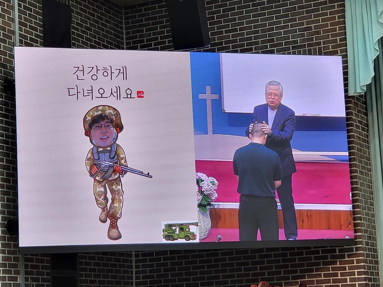 논산훈련소 입소 하루 전 교회에서 가족들과 마지막 주일 예배를 드린다. 신성한 국방의 의무를 이행하는 아들의 장도를 축하하는 의미에서 온 가족이 감사찬양을 올린다. 담임목사님의 축복기도와 성도님들이 따스한 격려로 사랑을 함께 나눈다. 입소 전 저녁은 아들과 함께 하고 싶었지만 친구들과 보내는 시간에 양보하였다.
