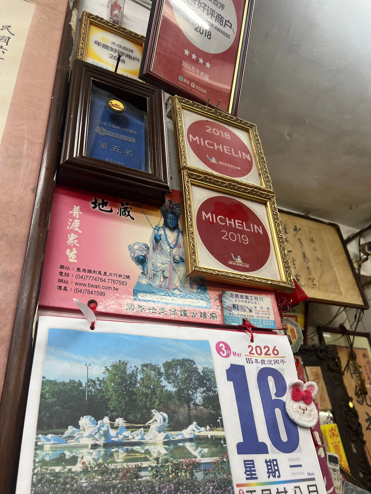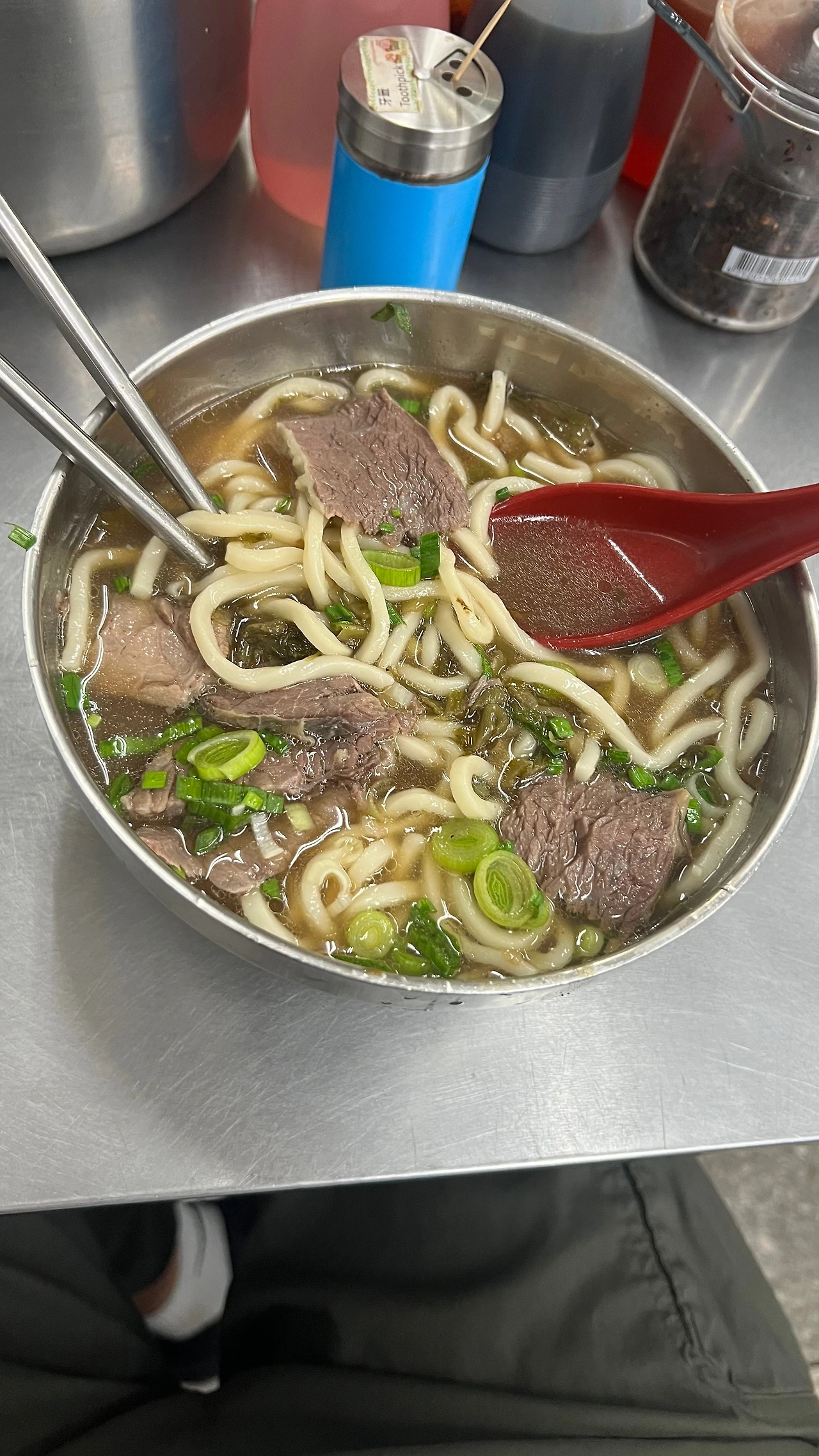 그러고는 방문한 식당. 미슐랭 스티커가 붙어있었다. 다행히 길지 않은 줄을 잠깐 서고, 들어가 앉았다. 좁은 식당인 만큼 1인은 합석 예정. 내가 먼저 앉고 반대편에 노부부가 앉았다. 사이도 좋아 보이는 노부부 앞에 어색하게 앉아 있는데, 마침 주문한 우육면이 나왔다. 사진 찍고 국물을 들이켜고 있었는데, 노부부가 앞에 있는 양념들을 넣어보라고 권하셨다. 손짓으로 표현했고, 뭔지 모르겠는데 짜사이(중국김치?) 비슷해 보이는 것을 넣어보라 하셨다. 그리고 옆에 매운 양념도 권하셨다. "스파이시 스파이시." 고마운 마음이 들었지만, 이분들이 어찌 나의 몸 상태를 아실꼬. 이분들은 나의 뱃속이 매운 것들에 평온하지 못할 거라는 생각은 1도 하지 못했겠지? 어찌 됐든 고마웠다. 이 부부는 대화하는 목소리도 어쩜 그리 조용하신지. 시끌벅적 중국인이 아닌 걸 보니 대만 분인 듯. 식당 직원들과도 편안하게 몇 마디 나누시는 걸 보니 종종 오시는 분들인 것 같다. 그리 그리해서. 넣은 시늉만 하고 매운 양념은 거의 넣지 않고 먹기 시작했다. 그릇의 내용은 10분도 안 되어 없어졌고, "하오즈~" 내가 아는 몇 안 되는 중국어 중 하나를 내뱉으며 자리에서 일어났다. (한 외국인이 설렁탕 먹고 있는데, 다대기 넣으라고 옆에서 이야기한다면? ㅎㅎ)