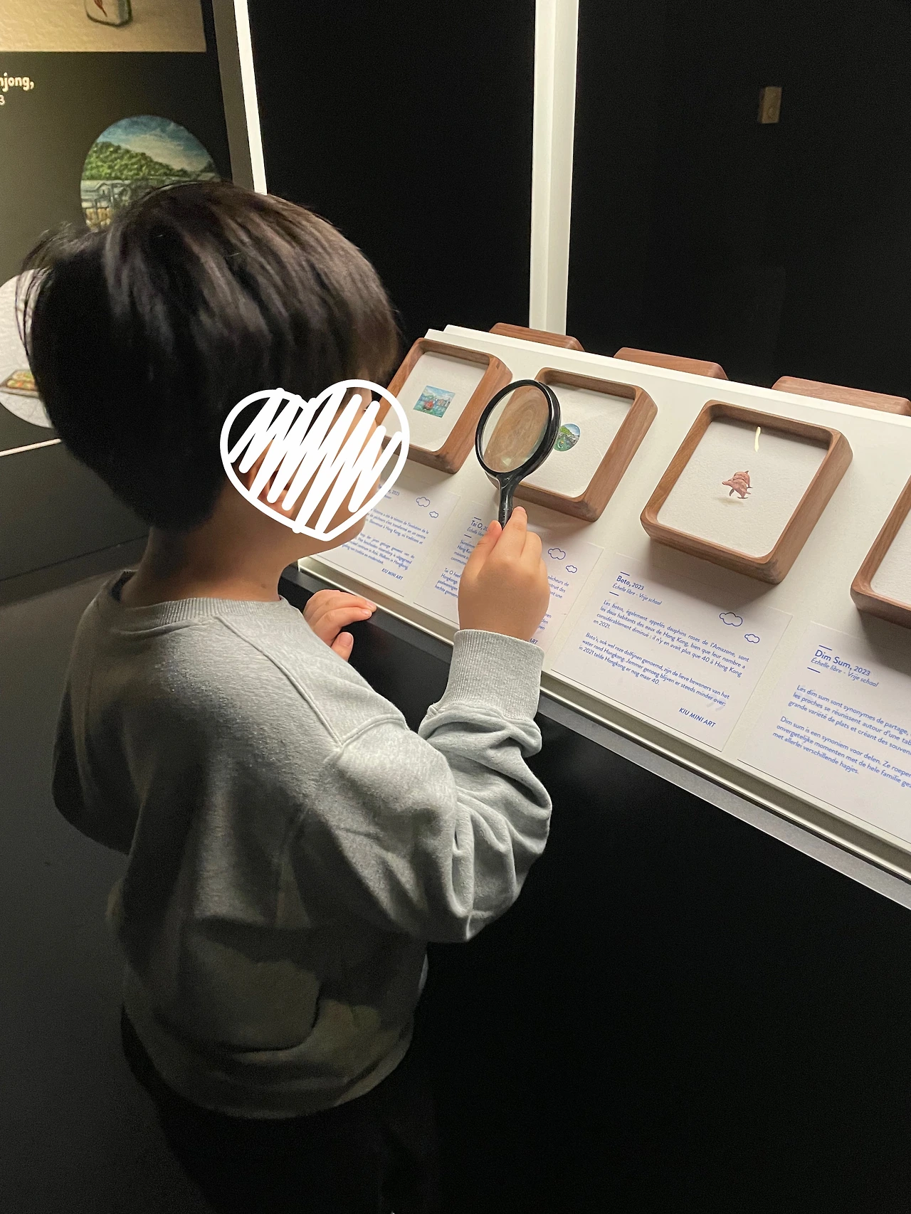 평소에 작게 그리기 좋아하는 아이는 전시된 미니어처 작품들을 보며 마음에 들어 합니다.