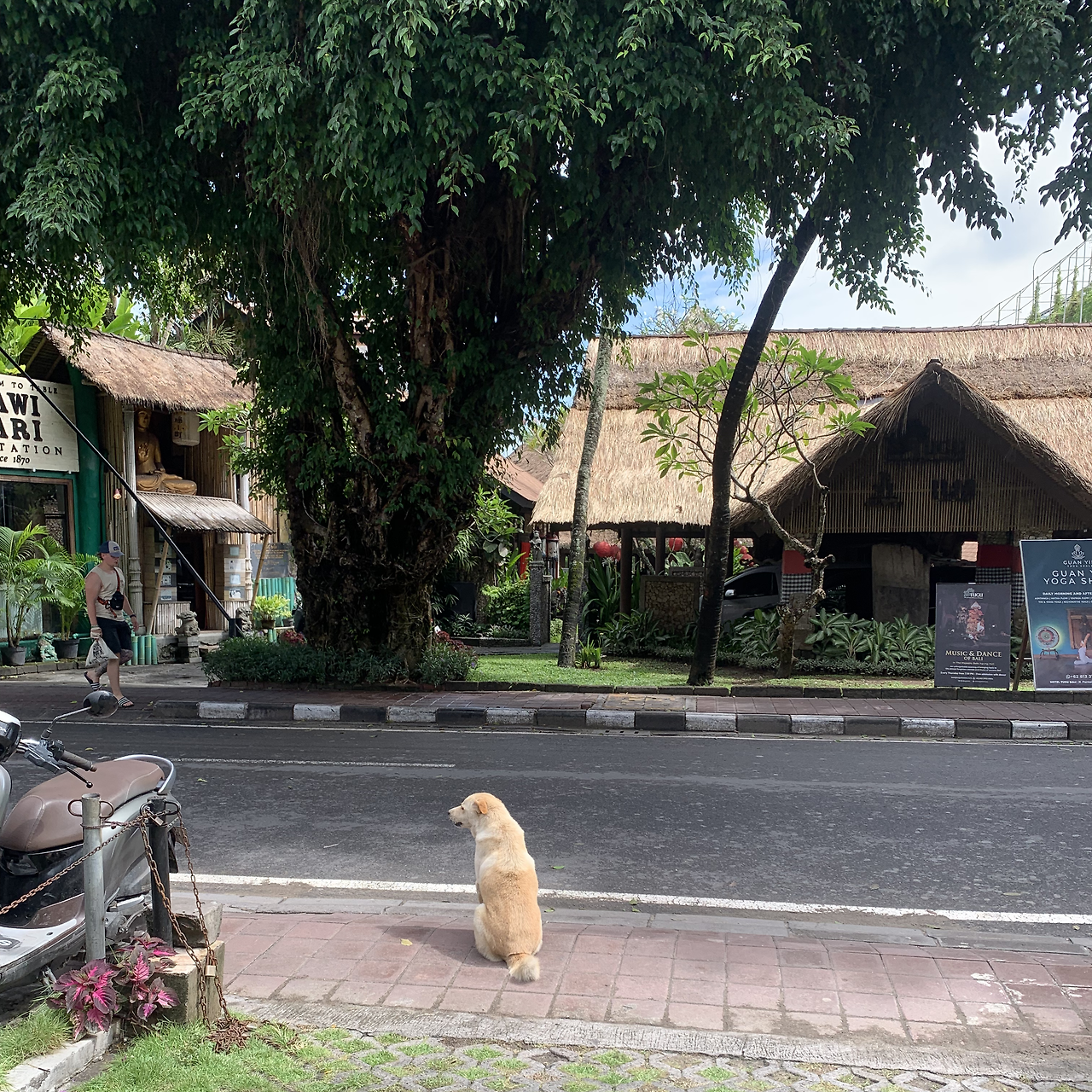 발리에 도착해 제일 처음 간 도시는 우붓이다. 발리에서 일주일을 지내는 동안 세 곳의 도시에 머물렀고 그중 내가 생각했던 발리의 이미지와 가장 잘 들어맞는 곳이었다. 저녁 늦게 도착해 짧게 잠을 청한 후 아침이 되어 숙소를 나와 우붓 시내 곳곳을 걸었다. 날이 좋아 해가 내리쬐는데도 불구하고 구글맵을 통해 본 이동거리가 그리 멀지 않아 그랩을 이용하는 대신 우리는 그냥 걷기로 했다. 좁다란 인도를 매쾌한 매연을 맡으며 걷는데 웬 강아지 한 마리가 보인다. 도로를 익숙한 듯 냄새 맡으며 꼬리를 바짝 올리고 도도하게 걷는 강아지. 사람들이 본인을 귀여워하는 것은 익히 알고 있다는 듯 주변에 크게 개의치 않고 본인 갈길을 간다. 주인이 없어 보이는데 그다지 위험해 보이지 않았던 건 이곳에서는 저런 강아지가 한두 마리가 아니기 때문인지 아니면 이곳 사람들은 강아지나 고양이에게 호의적이라는 말을 이미 들어서 일지도 모르겠다. 길을 걷다 조금만 시선을 돌리면 거리에 무방비하게 돌아다니는 강아지들이 천지이다. 발리에 오니 유독 길 위의 강아지들이 자주 눈에 뜨인다.