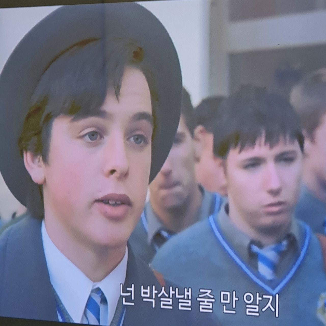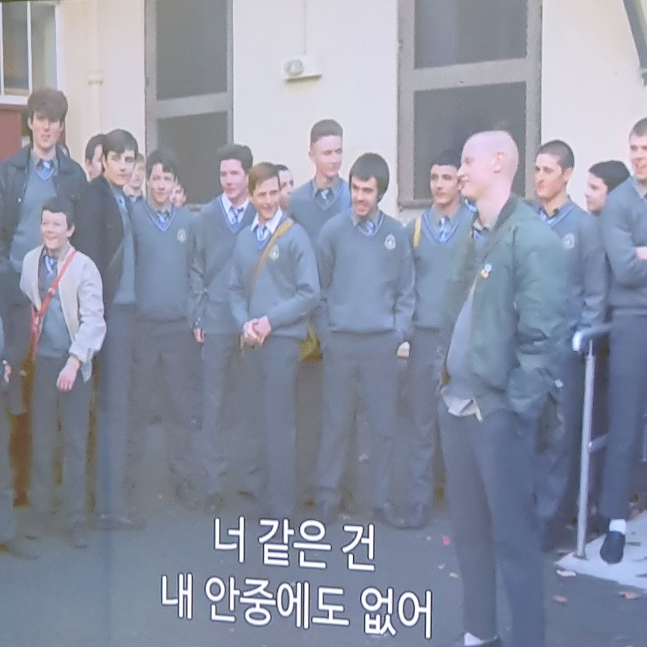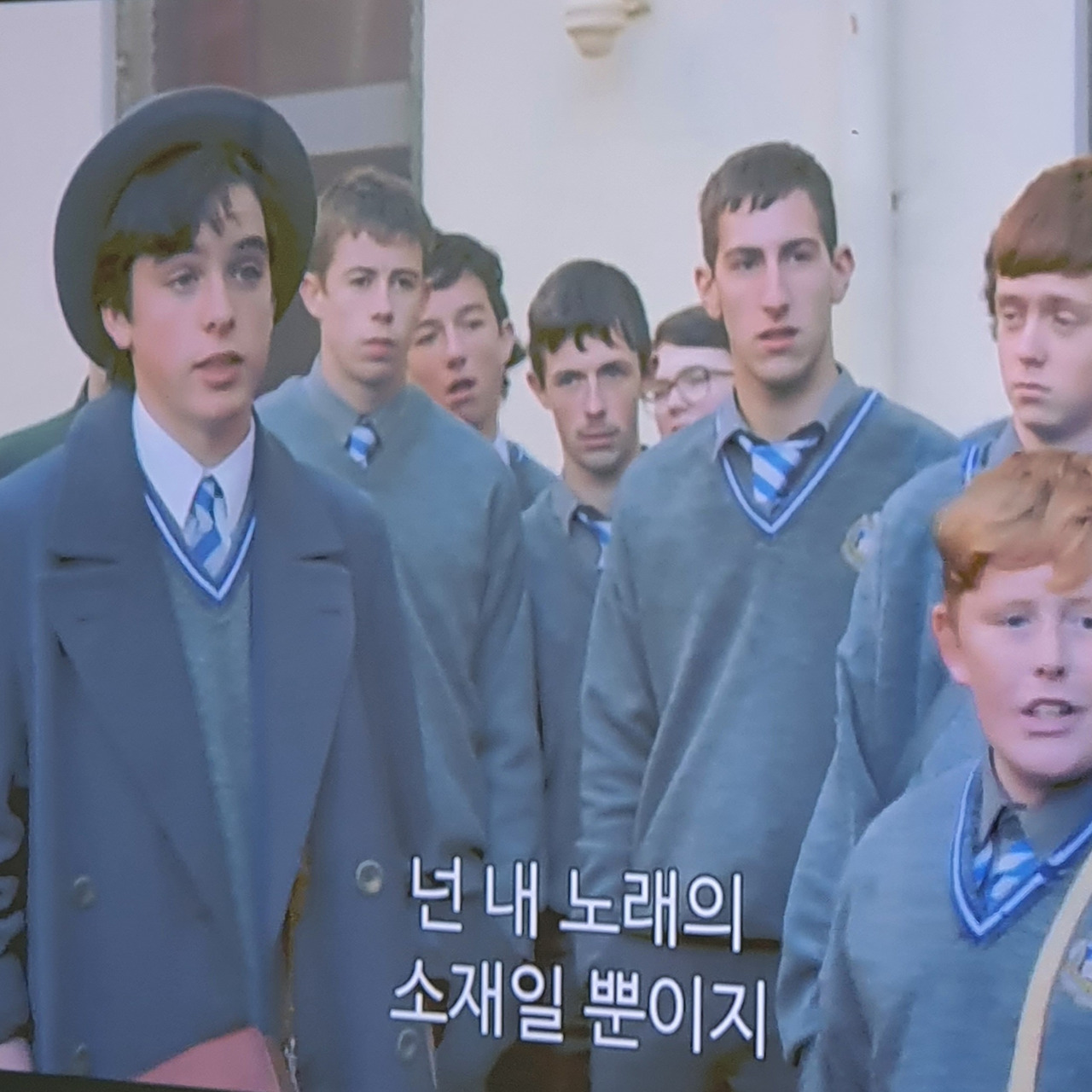 배리 (주인공을 때리고 괴롭히는 악동): “밴드는 잘 돼 가냐? 이름이 뭐라고? 게이들?” 코너 (주인공): “너야 말로 오스카 와일드 같다.” 배리: “언젠가 내 손에 죽을 줄 알아.” 코너: “너 같은 건 내 안중에도 없어. 너랑 나는 사는 세상이 달라. 넌 내 노래의 소재일 뿐이지.” 배리: “다음에 뱉을 말은 조심하는 게 좋아. 나한테 또 처 맞기 싫으면.”