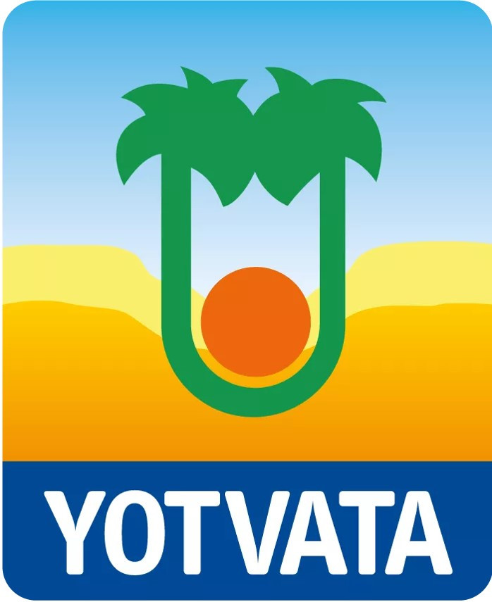 오른쪽 그림이 요트바타 로고다. 사막에 대추야자나무가 있고 그 사이에 태양이 떠오른다.