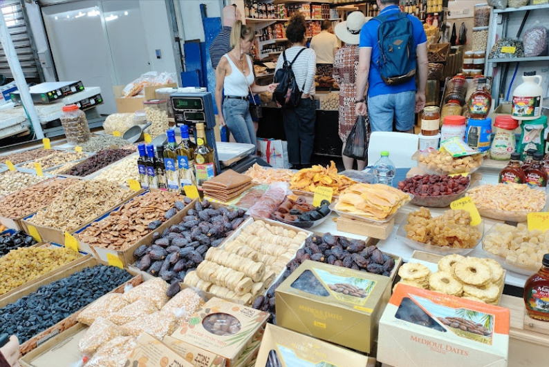 각종 과일들을 말려서 파는 가게다. 이런 가게가 하나가 아니고 아주 많이 있다. 무화과, 망고, 파인애플, 올리브도 있고, 사진 중앙에 짙은 갈색의 타원형의 열매가 종려나무 열매인 대추다. 단 것을 잘 먹는 사람도 아마 한 번에 3개 이상은 먹기 힘들 정도로 달다. 그래서 대추열매로 만든 꿀이 유명하다. 이스라엘에 있다가 한국으로 돌아가는 아주머니들의 열에 아홉은 대추로 만든 꿀을 꼭 챙겨서 갈 정도랄까.