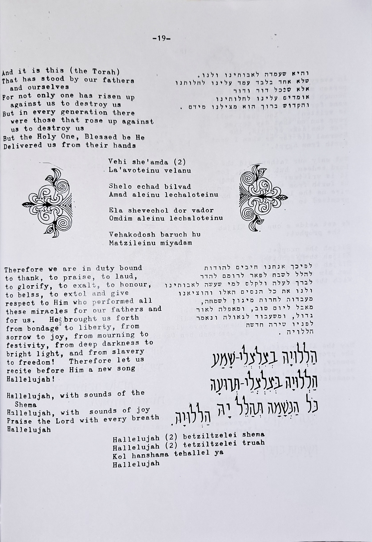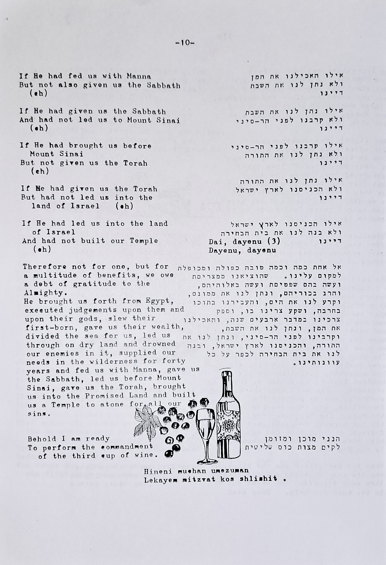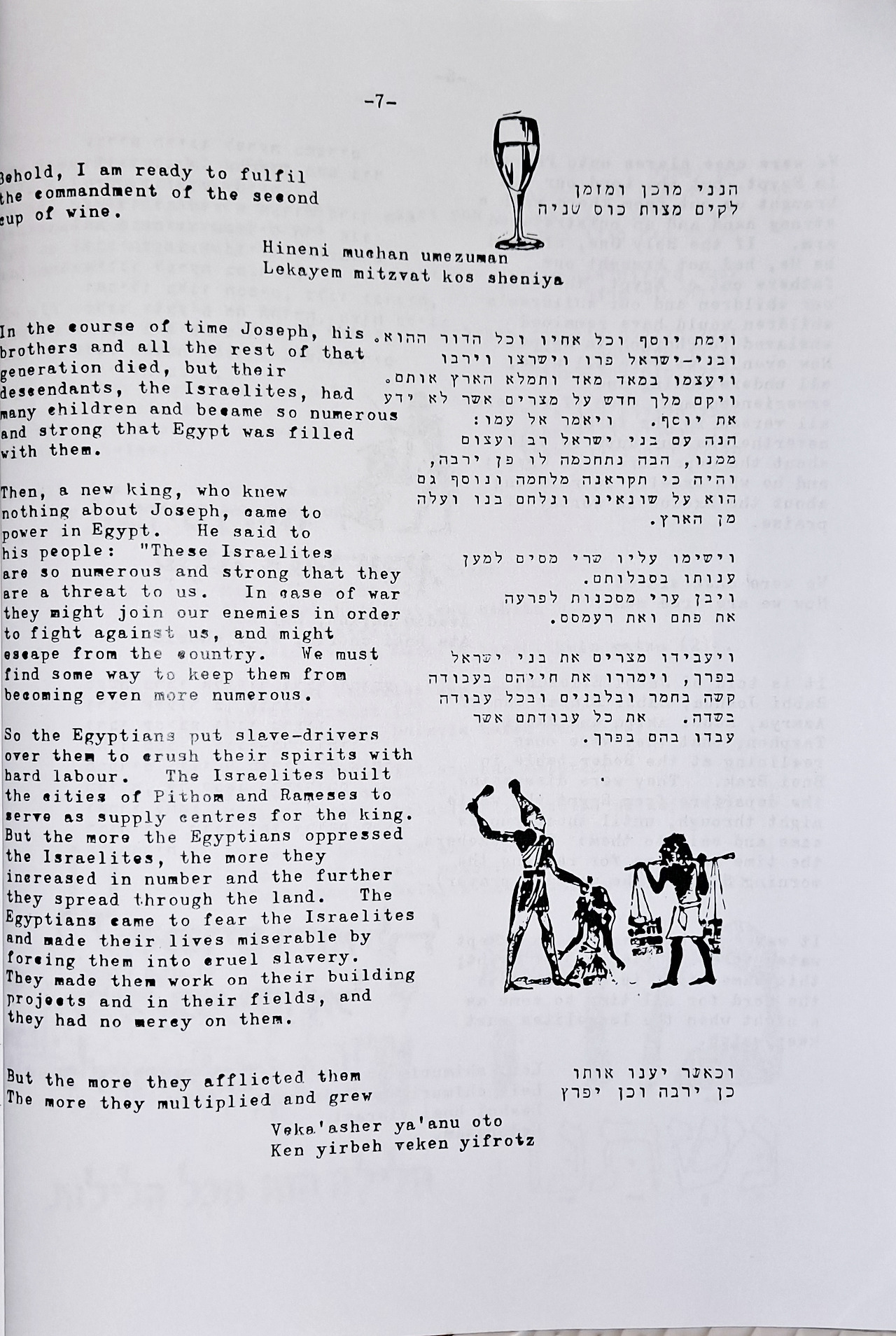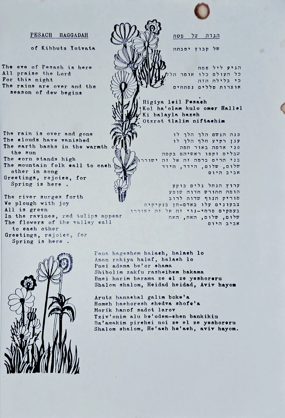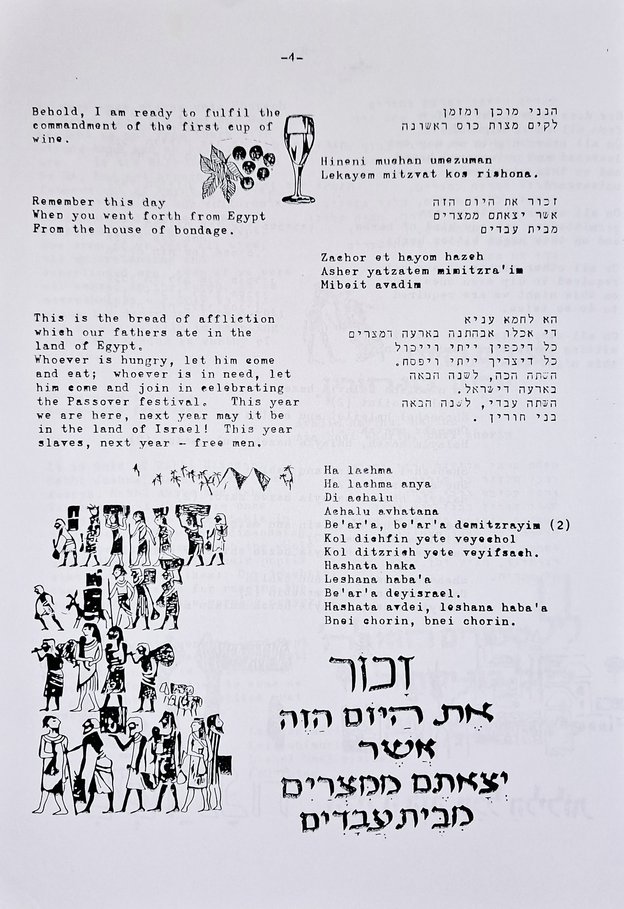 키부츠닉과 발런티어 모두 참여한 유월절 만찬이었다. 사람들 한 사람 한 사람에게 이 책자를 나눠주었고 나는 15년 후인 지금까지 이 책자를 갖고 있다.