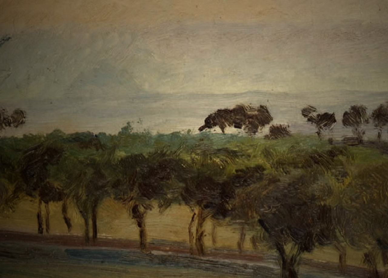 카페 그레코가 문화유산에서 제외되는 것에 반대하였던 이탈리아의 화가 키리코가 그려져 있다. 그림 속 왼쪽 의자에 앉아있다