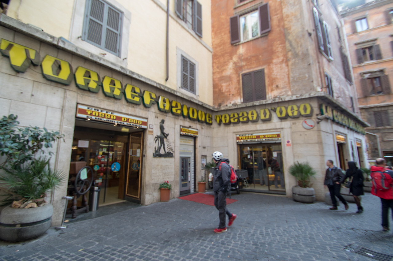 이탈리아어와 스페인어를 섞어서 간판에 쓴 이유는 로마가 예전에 일부 스페인령이었던 적도 있고 지금도 스페니쉬 사람들도 많이 이태리에 살아 이태리어와 스패니쉬를 잘하는 사람들도 많은 이유라 생각된다.