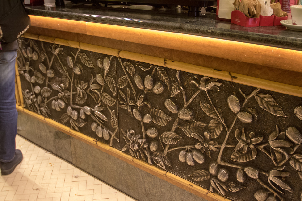 바 밑으로는 커피나무가 부조로 장식되어있다.