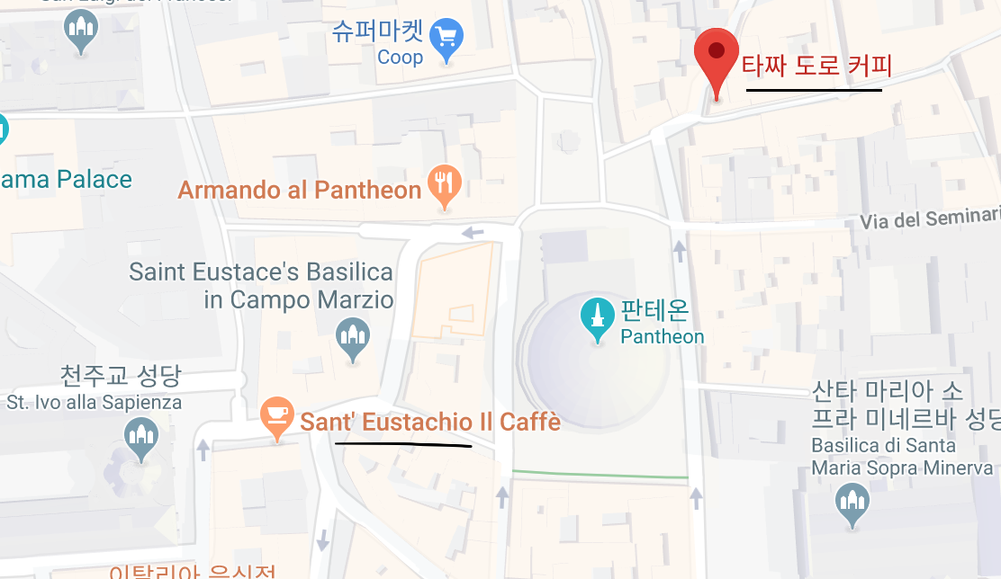 타짜도로 에스프레소가 맘에 안 들었다면 산 에우스타키오 에스프레소가 맘에 쏙 들것이다. 만약 이 두 군데의 에스프레소중 그 어느 것도 맘에 안 들었다면 지구 상 어느 카페에 가서도 자기 입맛에 맞는 에스프레소를 찾기는 불가능할 것이다.