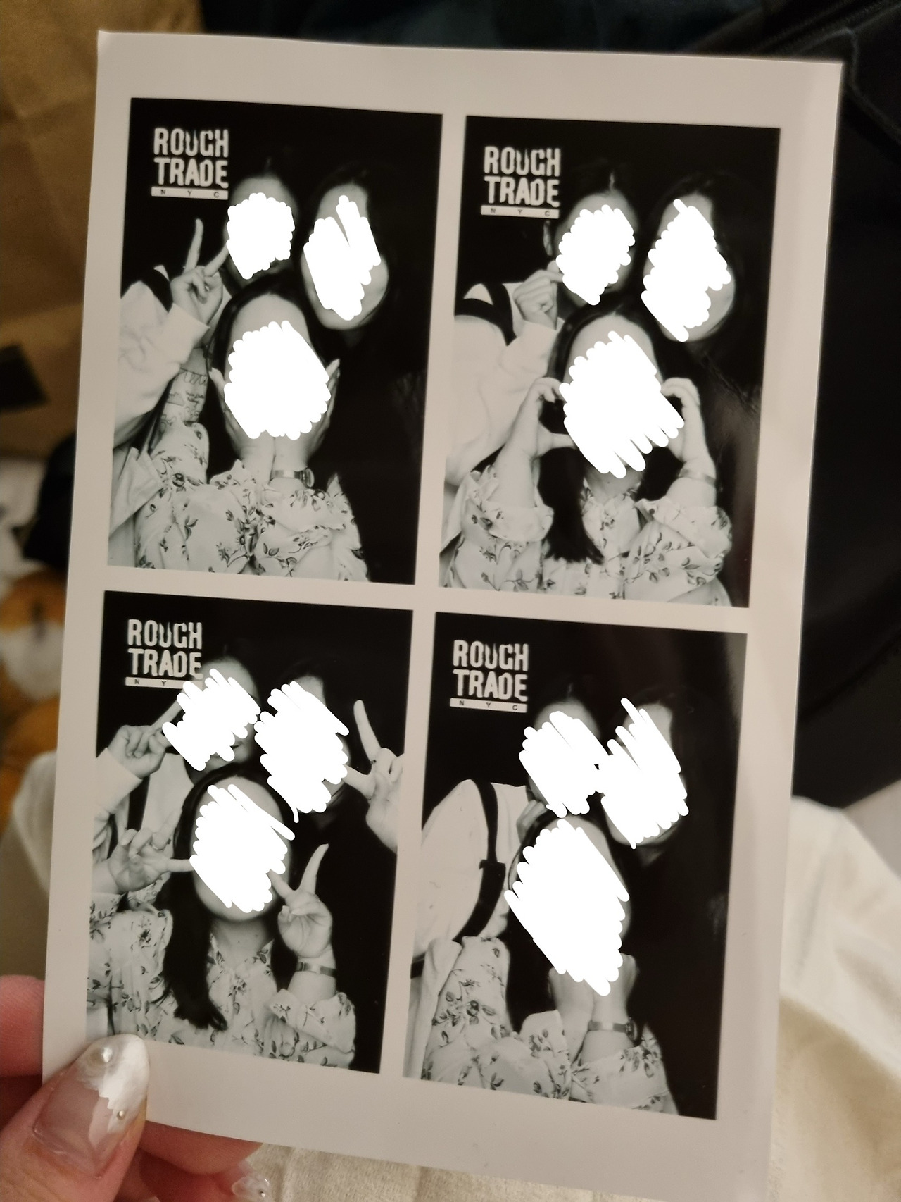 러프 트레이드의 입구로 들어와 오른편에 바로 위치한 포토 부스는 우리나라 인생 네 컷처럼 세로가 긴 직사각형의 프레임이 4개 있는 모양의 인화지로 출력된다.