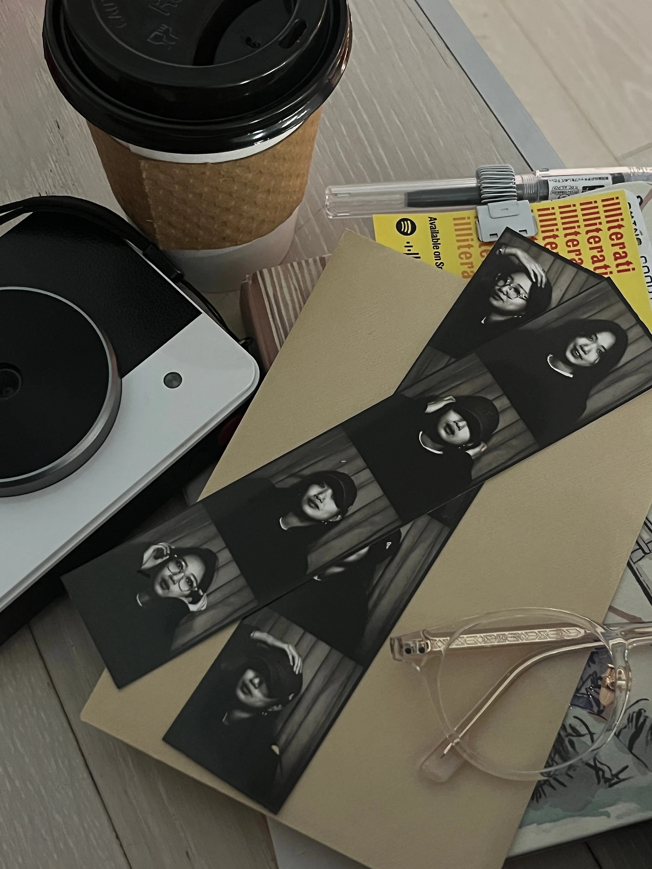 총 4개의 컷이 일자로 주르륵 인화되며 처음 꺼낼 때는 인화 과정에서 묻은 물이 조금 묻어 있기도 하다.