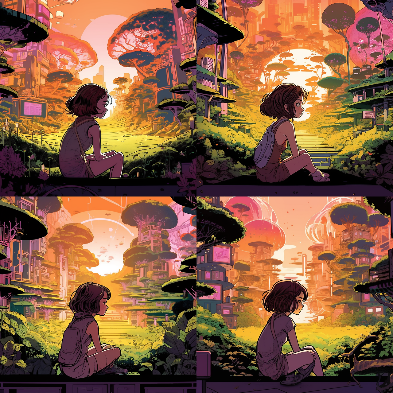 아직까지 이 이미지로는 미래 정원의 모습을 그려보기에는 영감이 많이 부족하다 싶었다. 그래서 그래픽 스타일을 일러스트레이션이나 코믹스타일로 바꿔보기로 했다.