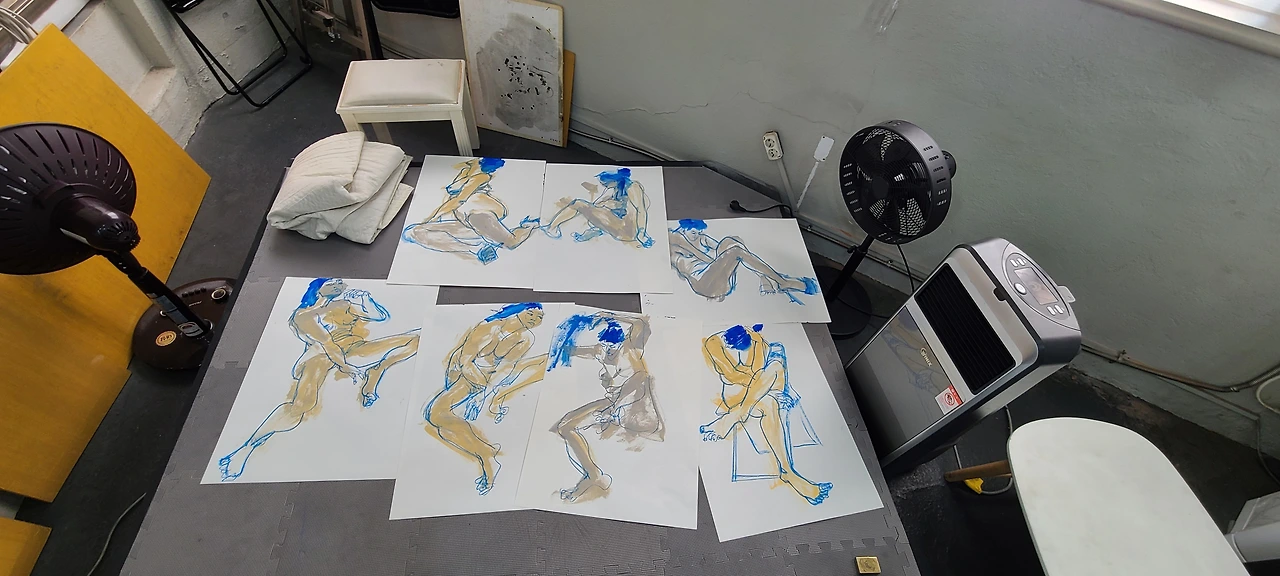 오늘 작업실에서 작업한 크로키 작업 전경입니다.