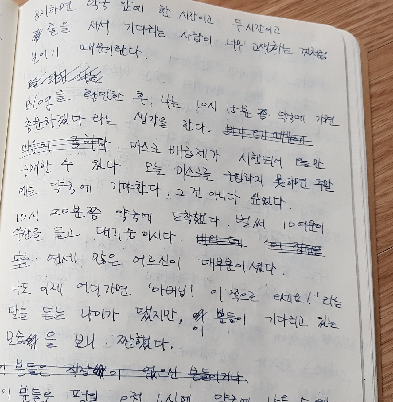 오늘도 펜을 잡고 미묘한 손의 감각적 움직임을 직접 느껴본다. 종이 위에서 미끄러지는 펜 촉의 사각거림에 기분이 좋아진다. 종이 위에 나 만의 생각과 감정을 쏟아낸다. 펜 촉에서 흘러나오는 잉크는 나의 아름다운 배설물이다.