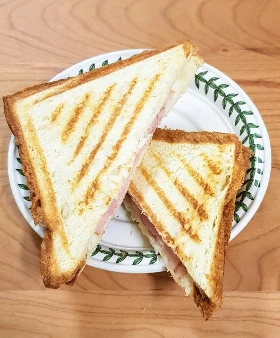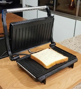 나는 새벽마다 일어나서 이렇게 식빵 사이에 모차렐라 치즈와 피자 치즈 그리고 슬라이스 햄을 넣어서 먹는 습관이 생겼다. 아침 토스트보다는 더 든든한 식사가 된다. 그런데 이 제품은 치명적인 단점이 있다. 식빵 판을 굽는 판의 크기가 식빵의 크기보다 너무 작다. 그래서 식빵의 끝이 기계 밖으로 삐져나오는 경우가 많았다. 그래서 고민하다가 파니니 그릴도 새로 구매했다.