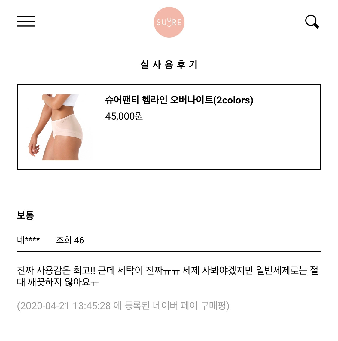 여태껏 모든 후기들을 빠짐없이 몇 번씩 읽었는데요. 그런 데이터로 봤을때 지금 이 후기가 슈어팬티를 가장 평균적으로 평가해주는 후기가 아닌가란 생각이 듭니다.