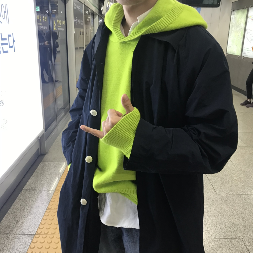 요즘 옷 좀 입는 사람들 사이에서 가장 유행하는 말이 ¹꾸안꾸라고 한다. 그런 그들의 패션 사조를 가소롭게 생각한다. 그들이 꾸안꾸 스타일을 추구하기 위해 갖은 노력을 기울일 때 나는 ²꾸안을 추구한다.파리지앵들을 보라. 그들이 과연 꾸안꾸일까 꾸안일까. 단언컨대 그들은 꾸안이다. 오랜 생활양식에서 비롯된 꾸안, 거기서 베어 나오는 자연스러움이 지금 그들의 멋이 된 것이라 생각한다. 물론 나는 파리에 안 가봤다. 영화에서 봤다. 나는 그 영화감독을 믿는다. 그 영화의 배우들을 믿고 의상감독을 믿고 영화 배급사를 믿는다. 나는 한번 믿으면 완전히 믿는 스타일이다.어쨌든 “꾸안꾸”의 최종 목적지는 결국 “꾸안”이란 것을 안다. 그 정도 거시적 안목이 나에겐 있다. 나도 파리지앵과 같은 꾸안을 추구한다. 그런데 나의 꾸안을 사람들도 꾸미지 않았다는 것을 단번에 안다. 이게 맹점이다. 나는 요즘 “좀 꾸미고 다녀라.”란 이야길 가장 많이 듣는다.좀 꾸미고 다니란 말에 대응하기 위해 ³니트로 짜서 후드를 만들었다. 꾸안룩을 추구하는 나에게 후드는 대표적인 꾸안 아이템이지만 이번엔 니트로 만들어서 꾸미지 않음에서 그치지 않고 어떤 멋이 깃들도록 디자인했다. 파리지앵처럼 정말 무심하게 걸쳐보시라. 꾸미지 않았음에도 풍겨나오는 뭔가가 있으리라.