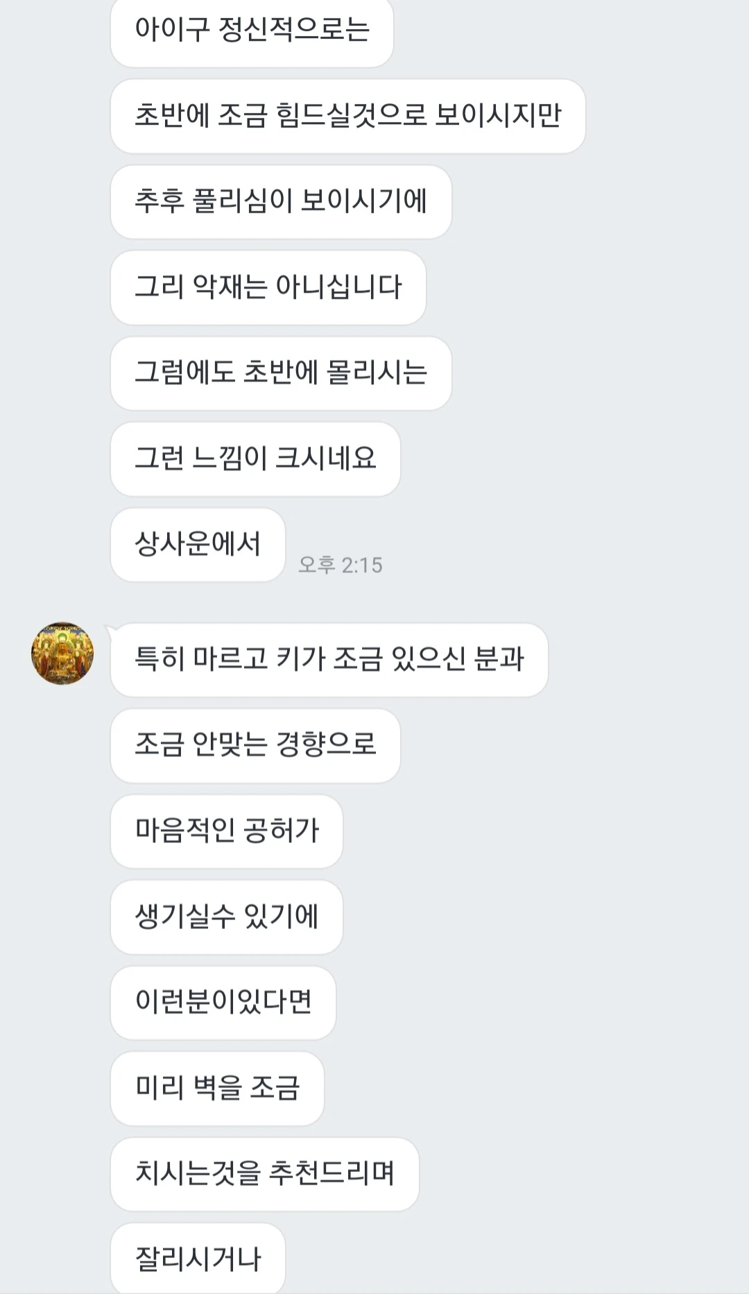 여기서 제한 시간인 20분이 금세 끝났다. 정말 들은 게 위의 말이 끝이었다. 그렇게 내 2025년 신점은 끝나버렸다. 앞에서 김씨도 이게 끝이냐며 나를 봤다.