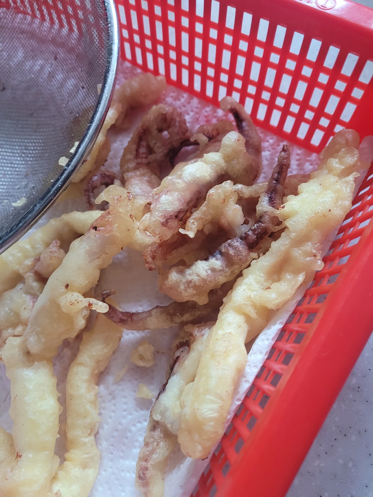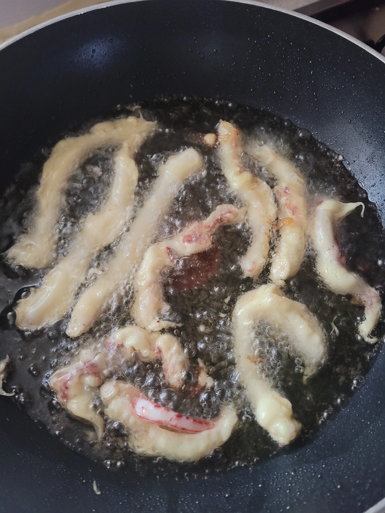 튀김반죽을 만들고 오징어를 조물조물 섞어 무쳤다. 좋아, 완벽해. 튀기기만 하면 돼. 식당 알바 경력직이 이런 것쯤이야. 우후훗.