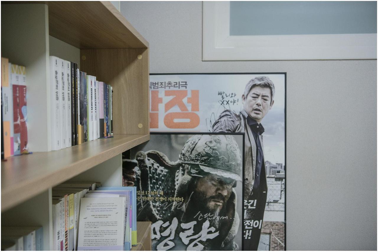 같이 일했던 분들이 배우분들의 사인을 받아다 주신 영화 포스터 두 장과 대학 때 단편 작업했던 친구에게 생일 선물로 받은 무비 슬레이트가 전부예요. 영화는 극장에 가서 봐야 한다는 생각이 강하게 있다 보니 집에선 영화도 잘 안 봅니다. 심지어 DVD도 없어요. 그리고 좋아하는 일이 직업이 되면 괴로워질 것 같아 너무 폭 안 빠지려고 하는 경향도 있어요. 영화는 그냥 진짜 일로 좀 남겨놓고자 합니다.