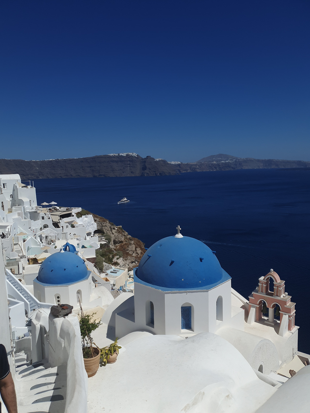사진 촬영에 대한 이런저런 생각과 기대를 가득 안고 산토리니로 향했다. 새벽 5시에 일어나 배를 타고 5시간이 넘게 풍랑을 버티어 산토리니 항구에 도착했다. 손쉽게 잡기는 했지만 30분이나 택시를 타고 섬 끝에 있는 이아마을에 왔고 캐리어를 끌고 골목길을 지나 호텔까지 찾아왔으니 돌이켜보면 만만치 않았던 하루였지만, 피곤함보다 얼른 호텔 밖으로 나가 아름다운 마을을 구경하고 사진을 찍고 싶은 마음이 더 앞섰다.
