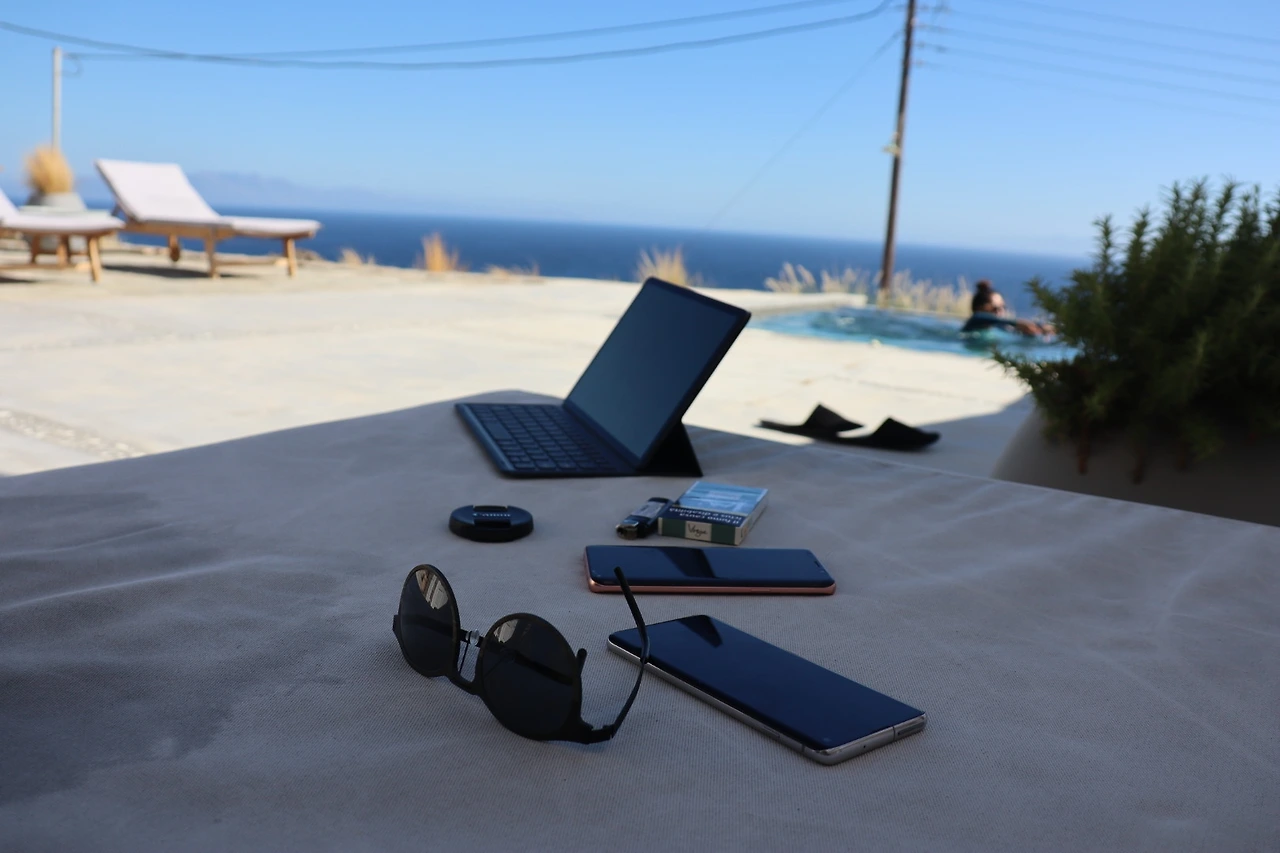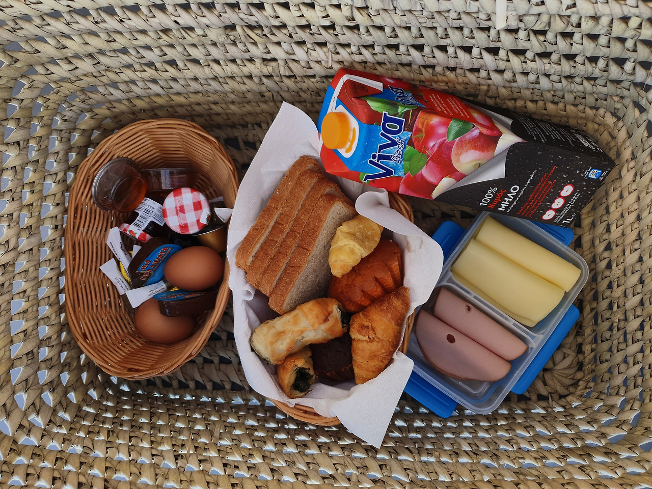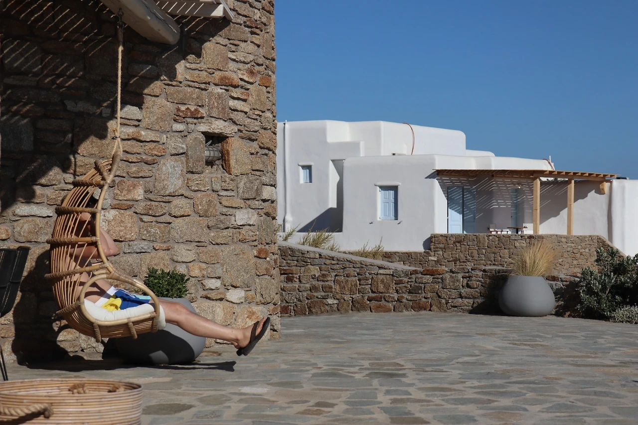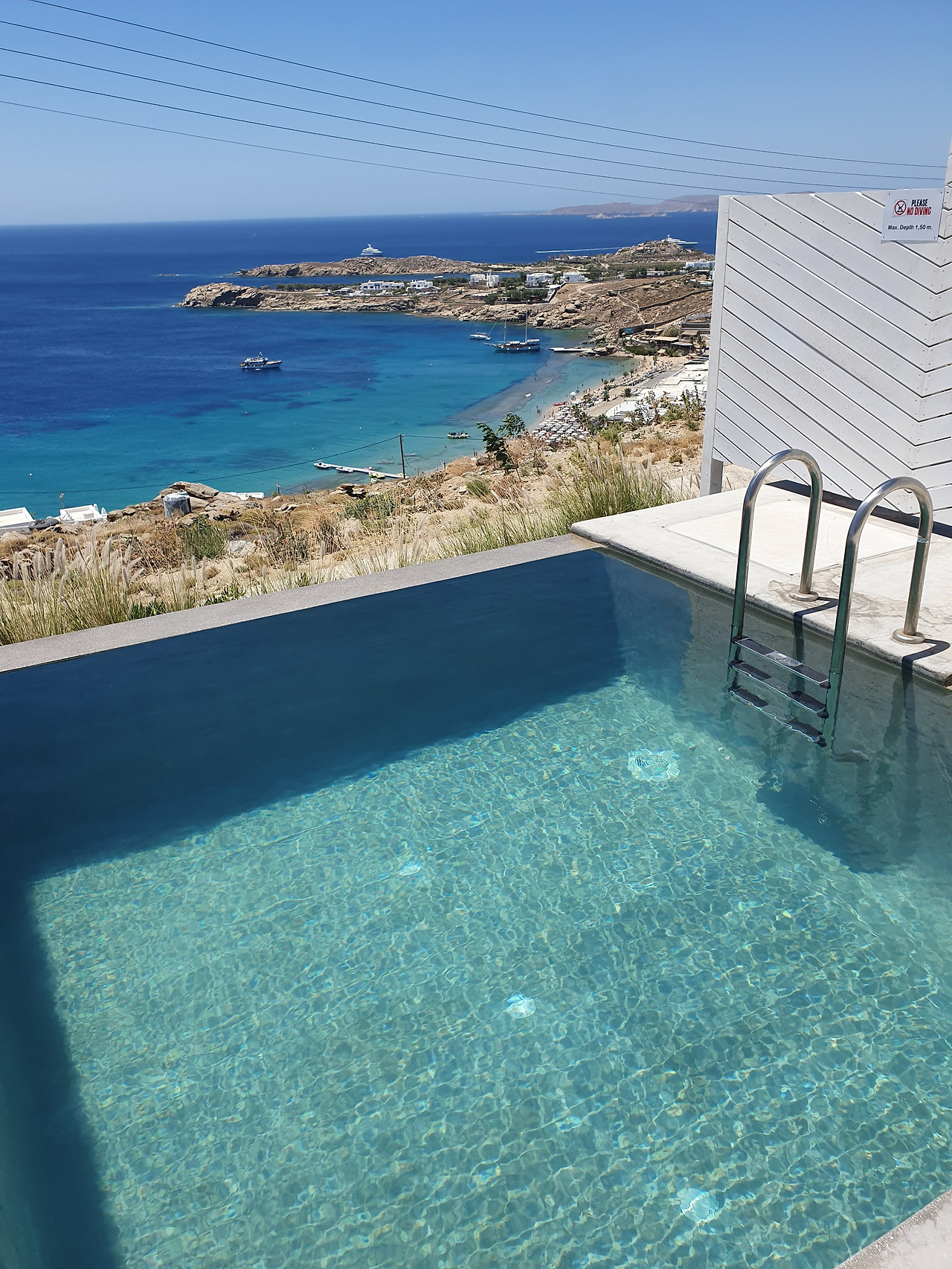 첫째, 1등 산토리니는 전 세계에서 몰려드는 관광객 때문에 호텔 가격이 너무 비싸지만, 미코노스는 훨씬 저렴했다. 같은 가격이면 더 넓고 좋은 숙소에 지낼 수 있다. 여행자는 그리스의 섬으로 떠나며 아름다운 바다의 풍경과 하얀 집들을 머릿속에 그려보고, 동시에 온전한 '쉼'을 꿈꾸며 찾아온다. 도시의 바쁜 일상에서 벗어나 여유로운 아침식사와 햇살을 동경하며 그리스의 섬으로 향한다. 미코노스의 호텔과 숙소에서는 '쉼'을 사진으로 저장해 올 수 있다. 1등 산토리니에서도 절벽 아래 푸른 바다와 하얀 이아 마을의 절경을 메모리에 저장할 수 있었다. 물론 만족스런 여행 사진으로 간직할 수 있지만, SNS와 인터넷에는 '더 잘 찍은 내 것 아닌' 사진이 더 많다. 1등 풍경은 없지만 미코노스에서 찍은 사진의 피사체들은 아침에 마시던 사과주스, 커피, 태닝을 즐기며 선베드에 무심히 툭 던져두었던 선글라스였었다. 여행을 마치고 일상으로 돌아와 사진을 넘겨본다. 사과 주스를 찍은 사진만 보아도 그때의 주스 맛이 혀끝에 생생하게 소환되는 것 같다. 넓은 숙소의 사진을 핀치 줌인, 줌아웃을 반복하면서 좋았던 그때의 순간으로 돌아간 것처럼 느껴져서 일상에서 짧지만 확실한 리프레시 효과를 느낄 수 있다. 숙소나 호텔이 크고 좋다는 것은 '쉼'을 목적으로 떠난 여행에서 무엇보다 중요한 것이었다.