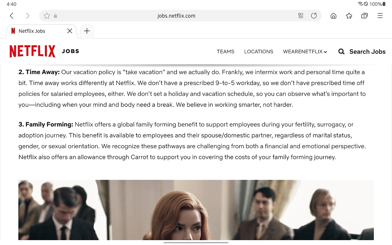 그럼에도 넷플릭스를 좋아하는 다른 명확한 이유가 있습니다. 직원 입장에서 거부할 수 없는 ‘휴가 제도’를 가지고 있기 때문입니다. 더 정확하게 말하면, ‘휴가 제도’라는 게 없습니다. 직원이 원할 때, 원하는 형태로, 원하는 만큼 쉴 수 있습니다.