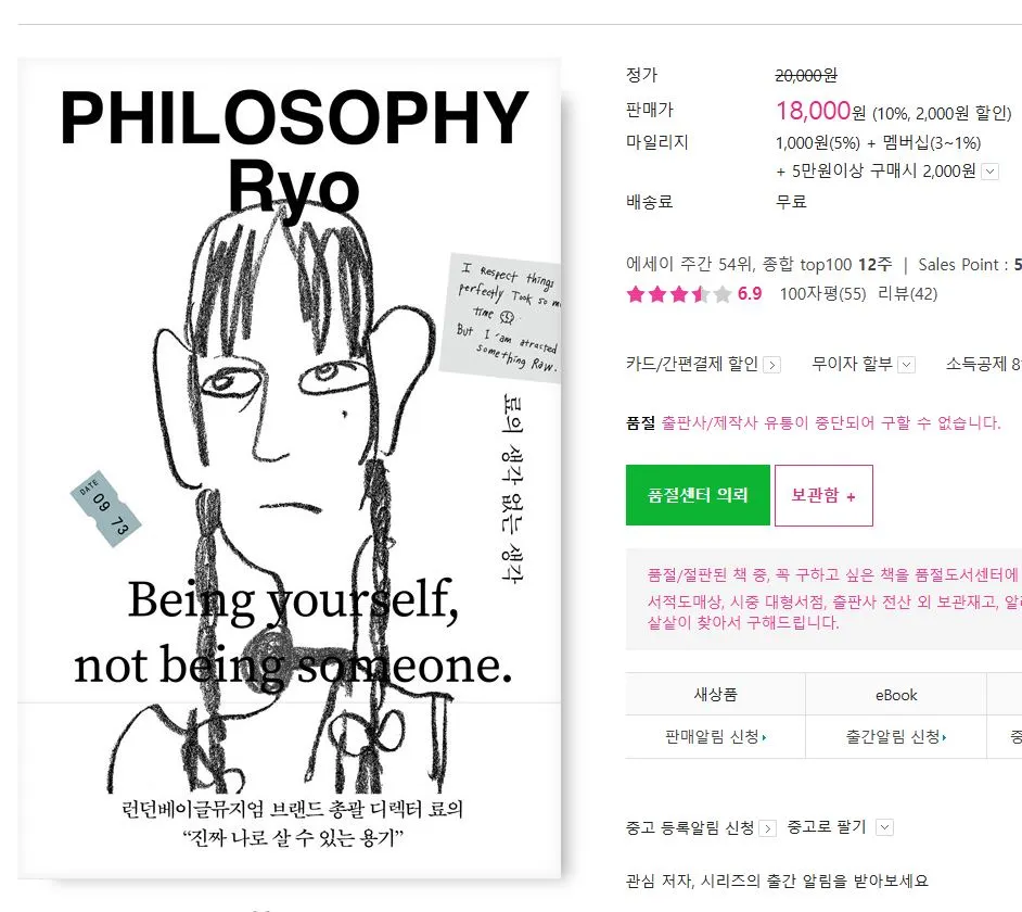 부러웠다. 브랜드 하나 잘 만들어 건물을 사다니. 하고 싶은 일을 하면서 먹고사는 일, 모두가 꿈꾸는 것 아닌가. 그 후로 얼마나 시간이 지났을까 '료'의 얼굴을 방송에 볼 수 있었다. 즐겨보는 유튜브 <사고 실험>을 통해 그의 목소리를 들었다. 언제나 좀 다른 생각을 했다는 유년기 이야기, 다음 세대로 향해 있는 시선, 외부보다는 내면을 탐구하는 기질, 자유로움을 추구하는 지점에서 묘한 동질감이 느꼈졌다. 일에 대한 깊은 몰입, 표준에서 벗어난 사고방식과 실행력까지 이해되는 점이 많았다. 이후에도 그는 방송에서 자주 보였다. 아마도 책을 홍보해야 했을 것이다. 에디터 후배들이 그 책을 많이 샀다.