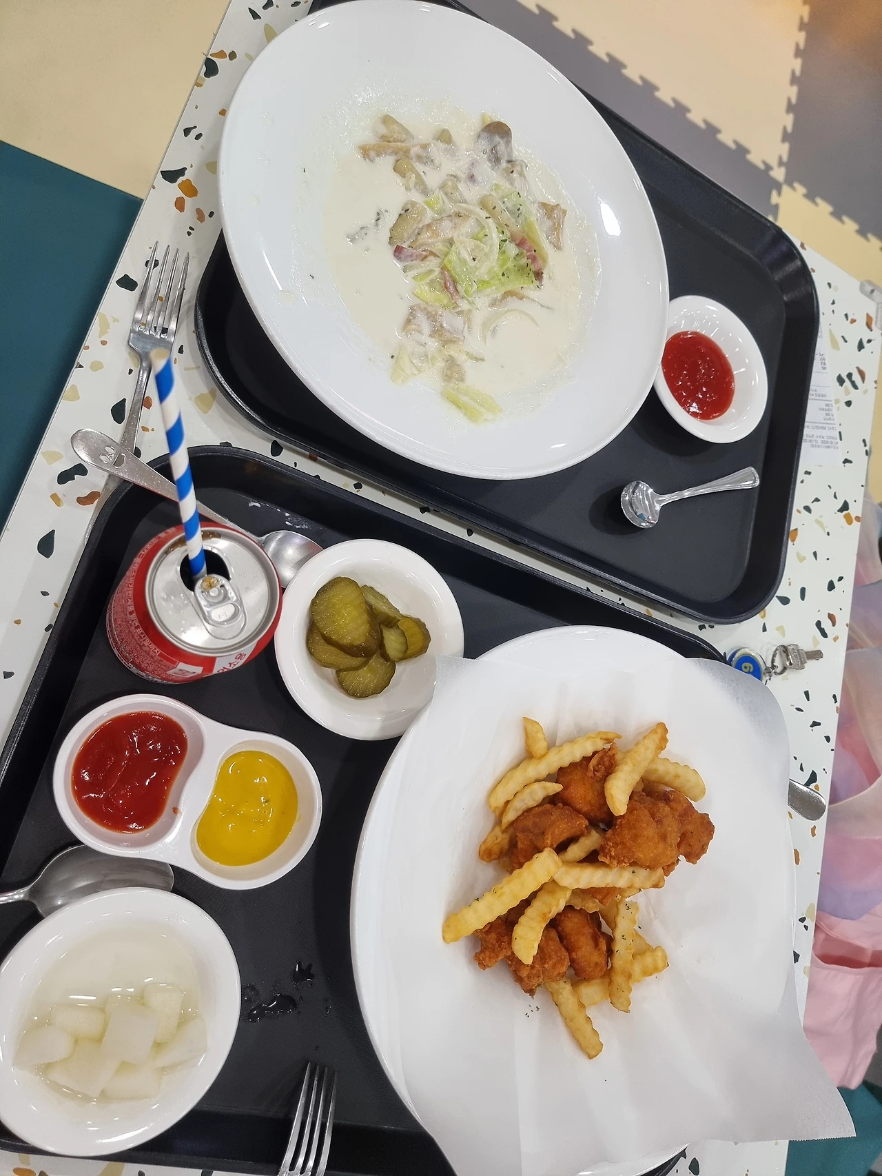 결국 둘 다 주문하고 콜라까지 얹었다.