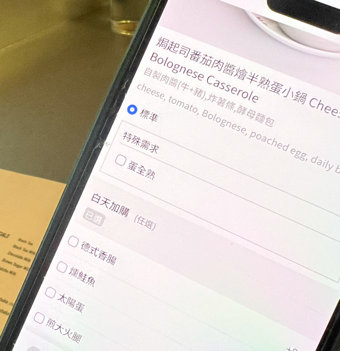 단언컨대, 타이베이에 도착하자마자 첫끼로 브런치 카페에 가서 5만원 태운 한국인 관광객은 흔하지 않을 것이라고 생각한다. 처음엔 한자밖에 없는 메뉴판에 좌절했다가 갖다준 영어 메뉴판에 셰셰를 말하며 찬찬히 살폈다. 여기도 대면으로 주문을 받기보다는 큐알로 주문을 받았다. 관광객이 없는 동네에서 처음 만난 위기. 바로 옵션 선택이었다. 음식은 이름과 함께 사진이 친절하게 표시되어있었지만 선택 사항엔 영어가 없었다. 이럴 땐, 그냥 맨 위에 시키는 게 정답. 우리는 프렌치 토스트와 볼로네제 스타일의 무언가를 시켰다.