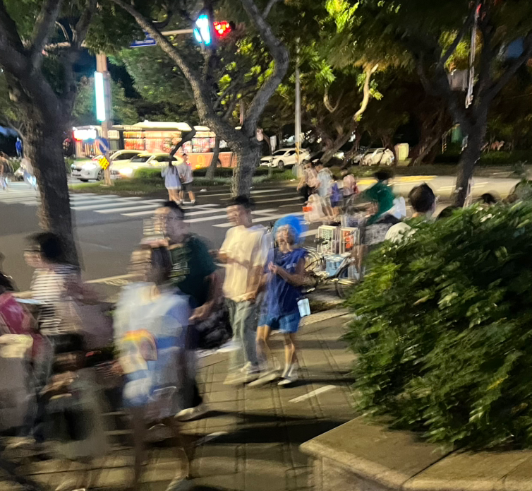 여행의 마지막 밤 갑작스럽게 필요한 물건이 생겨 밤 시에 쇼핑을 나섰다 . 저녁 9시,타이베이의 티엔무 며칠 돌아다녀 본 결과 외부인이 거의 없는 조용한 동네였다 오늘 분위기가 평소와 다르다 항상 사람이 없어 휑했던 외국인학교 앞 인도에 삼삼오오 몰려나온 사람들이 가득했다 주말 티엔무 공원에서 플리마켓을 여는 건 알고 있지만 사람들이 이렇게 많을 리가 없다.