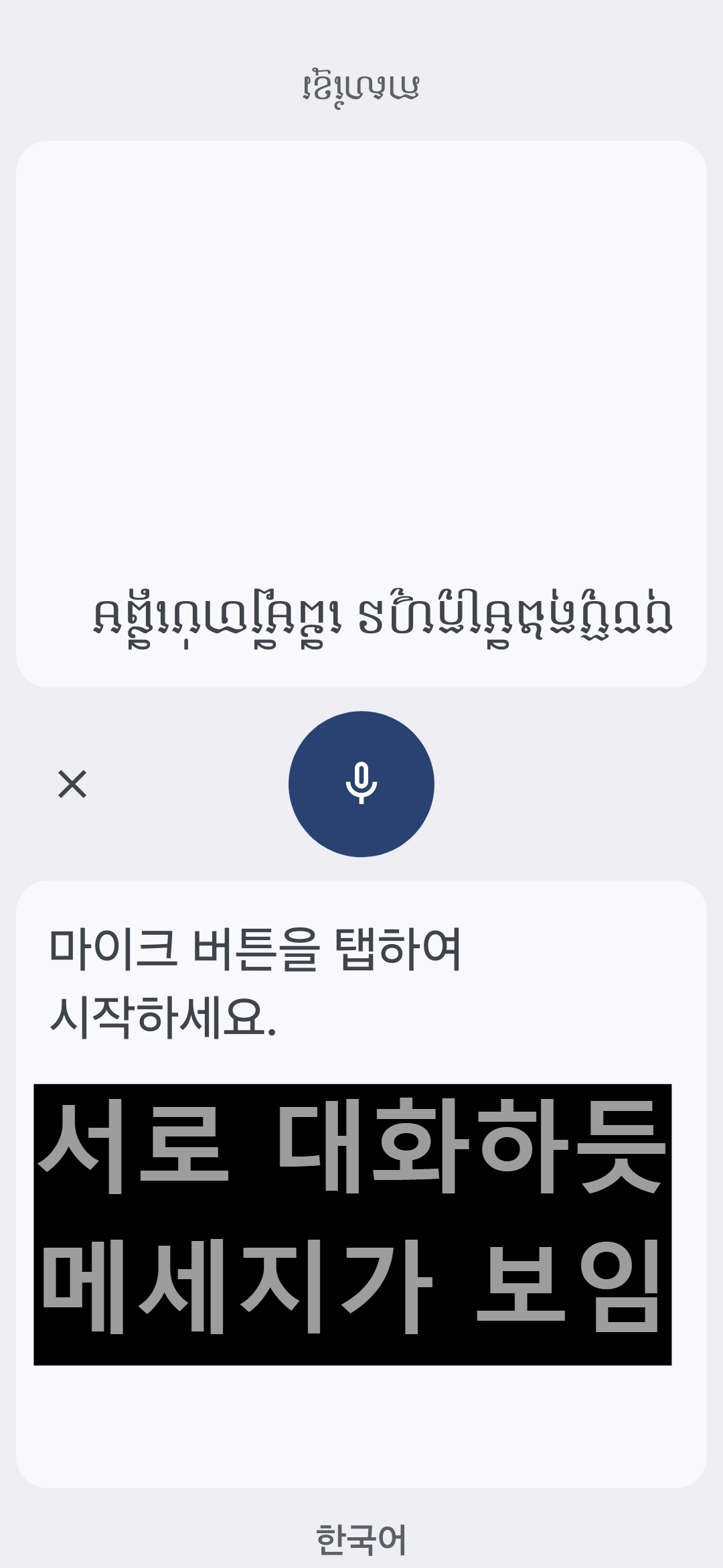 전에 썼듯이, 캄보디아에서는 크메르어(Khmer)라는 고유 언어를 사용한다. 외국인인 나는 크메르어를 할 수 없기 때문에 주로 영어로 소통해 왔다. 다행히 프놈펜의 식당, 카페, 슈퍼마켓 등에서는 영어가 비교적 잘 통하는 편이라 기본적인 회화만 가능해도 번역기를 쓸 일은 많지 않다. 하지만 툭툭 기사, 경비원, 수리 기사, 재래시장 등에서는 영어가 거의 통하지 않으므로 번역기가 필요하다.