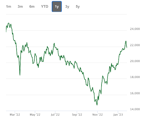 2022년 10월말 -50% 수준까지 하락하였다가,