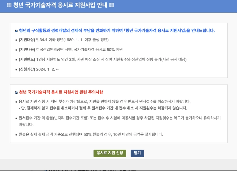 청년이라면 응시료를 3번까지 반값에 해준다고 한다.