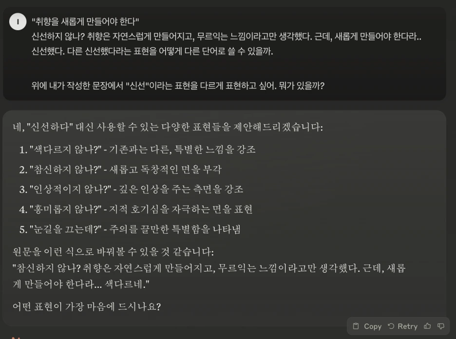 신선하지 않나? 취향은 자연스럽게 만들어지고, 무르익는 느낌이라고만 생각했다. 근데, 새롭게 만들어야 한 다라.. 신선했다. ("신선했다"라는 표현을 어떻게 다른 단어로 쓸 수 있을까..)