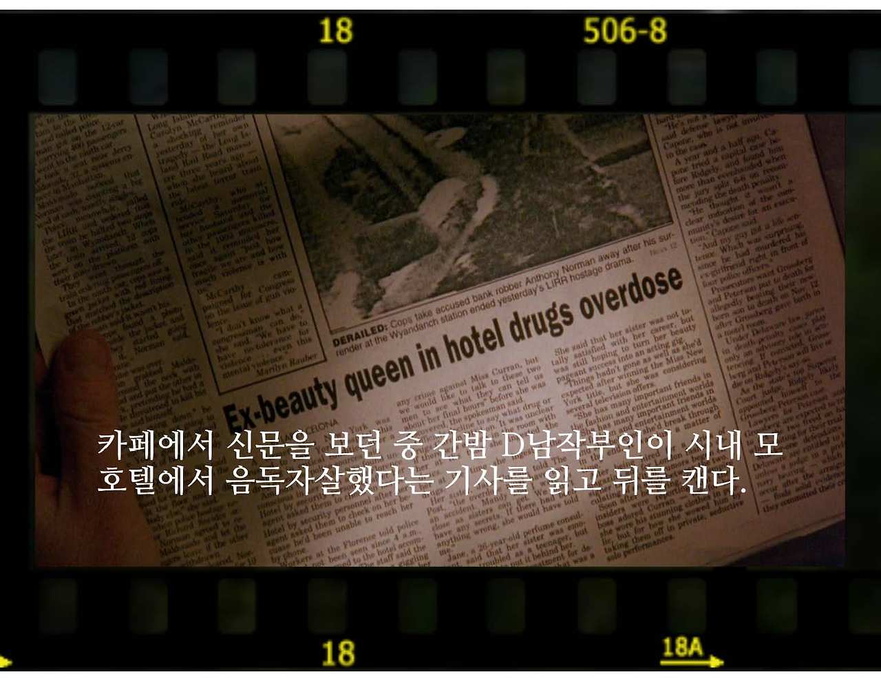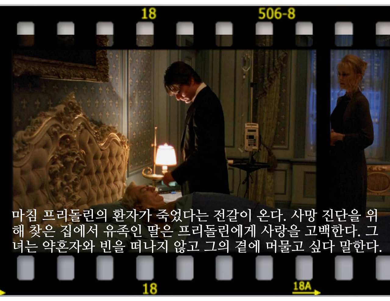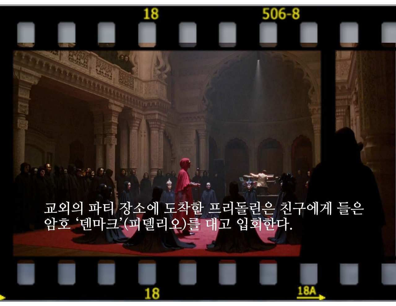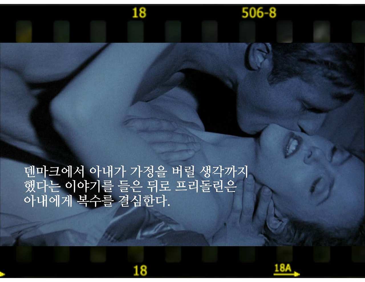 화면에 비친 영화 <블룸 인 러브Blume in Love>는 이혼 전문 변호사 블룸이라는 남자가 전처와 현 애인, 자신의 비서 사이에 갈피를 잡지 못하고 베네치아에서 방황하는 이야기이다. 큐브릭은 이 영화가 주 선율로 쓴 노래 ‘빈, 나의 꿈의 도시’를 <아이즈 와이드 셧>으로 단 1초쯤 가져온 것이다. 아는 사람은 알 것이라는 큐브릭의 선물이다.