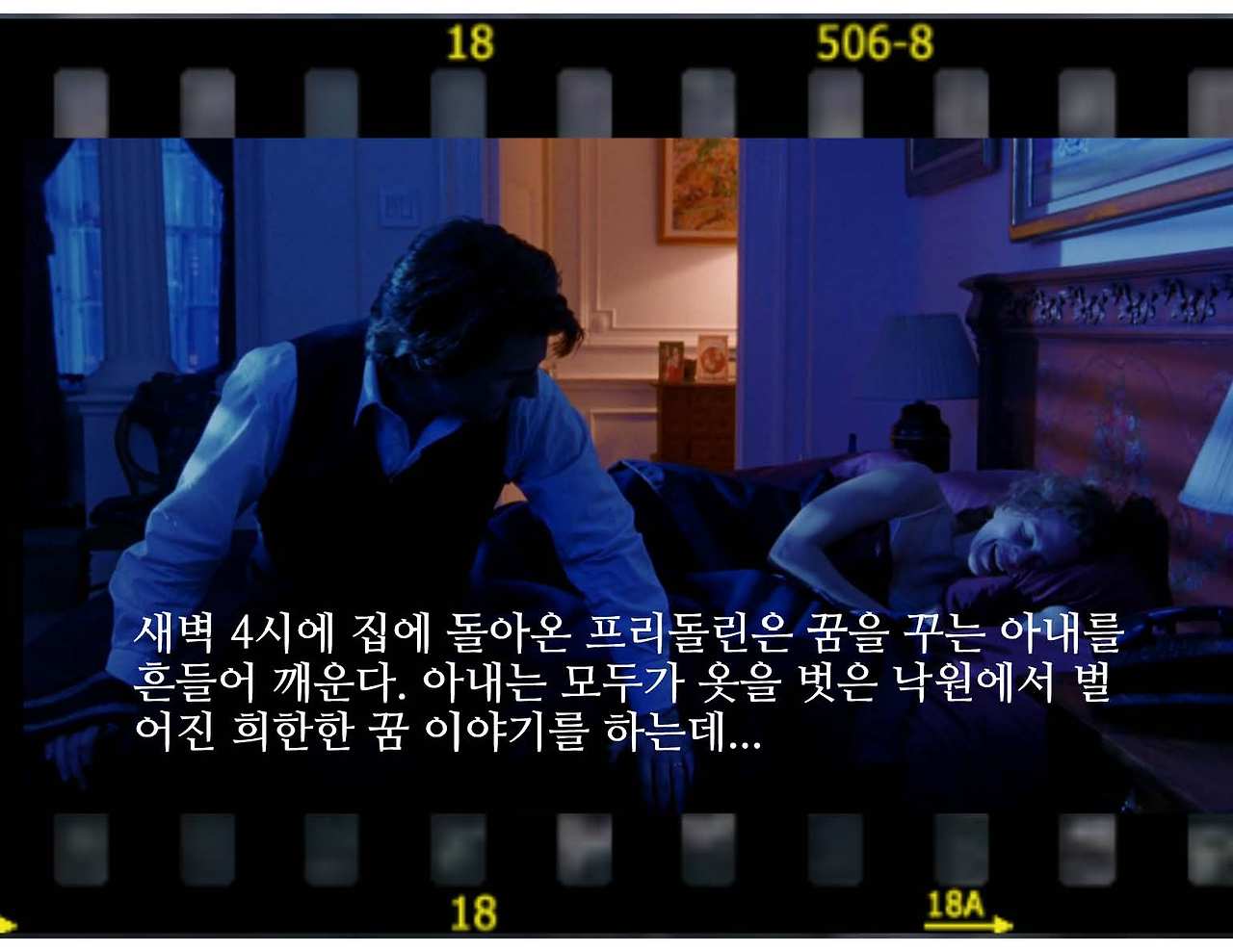 더욱이 영화 <아이즈 와이드 셧>의 원작은 19세기 말을 배경으로 한 오스트리아 작가 아르투어 슈니츨러의 단편 『꿈의 노벨레』이다. 베네치아 영화제는 촬영을 마치고 작고한 큐브릭에게 비평가상을 수여했다. 슈니츨러의 소설을 영화 장면과 함께 간추려 본다.