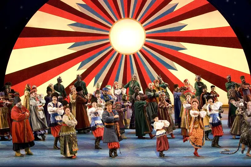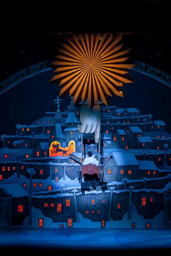 프란체스카 잠벨로는 <신발>이 그동안 받지 못한 찬사를 한껏 받을 만한 공연을 만들었다. 20세기 후반을 대표하는 연출가였던 장 피에르 포넬의 보조로 이력을 시작한 그녀는 특이하게 미국 태생이면서 1970년대 모스크바에서 대학을 다녔다. 여러 메이저 오페라단에서 특색 있는 공연을 만든 능력은 이런 이력이 뒷받침된 것이다. 의상과 무대, 연기가 완벽하게 작동하는 공연은 이 곡을 처음 보는 관객이라도 한순간도 놓치지 않게 만든다. 유튜브에는 1961년 소련에서 제작한 영화 <크리스마스 이브>가 올라 있다. 잠벨로는 아마도 학창 시절에 보았을 이 영화로부터 시각적인 이미지를 빌려온 모양이다.