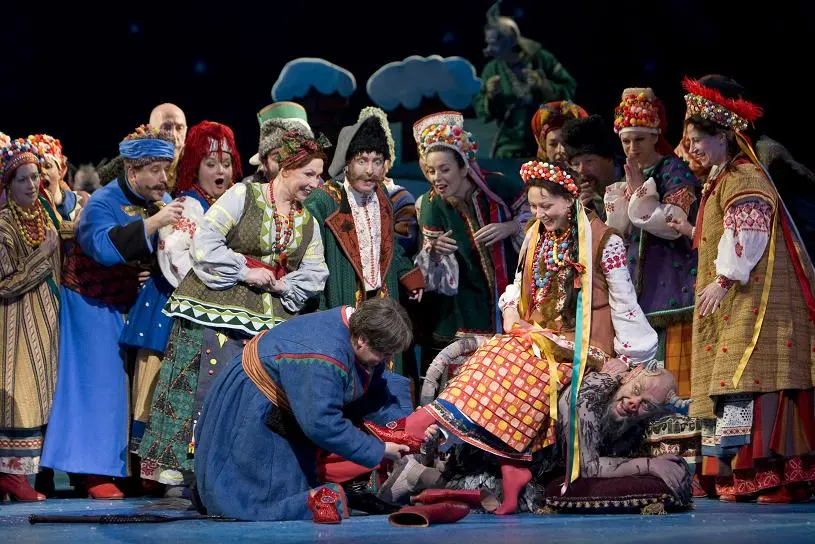대장장이라는 직업은 바그너의 지크프리트와 경쟁해야 하지만, 그렇게 비장하지 않다. 바그너의 주인공이 출생의 비밀을 놓고 세상과 씨름할 때 공감할 사람은 많지 않겠지만, 바쿨라가 옥사나의 마음을 얻지 못해 죽으려 들 때, 사랑을 아는 사람이라면 누구나 돕고 싶을 것이다. 그가 악마의 도움으로 상트페테르부르크로 날아가 황제에게 신발을 청하는 모습은 다소 뜬금없게 보일지 모른다. 그러나 황제의 반응을 보면 당대의 상황을 알 수 있다. “러시아의 미네르바가 이끈 승리가 흑해 연안까지 뻗쳤음을 축하”하는 무도회에 나타난 젊은이가 신발을 달라하자 황제는 우크라이나 여자들은 모두 이런 신발을 신어 마땅하다라고 칭찬한다. ‘러시아의 미네르바’는 러시아의 치세를 최대로 넓힌 예카테리나 여제를 뜻한다. 우크라이나에서 마제파가 반란을 일으킨 뒤로, 코사크를 당근과 채찍으로 다뤄야 했던 러시아의 속내를 보여준다.