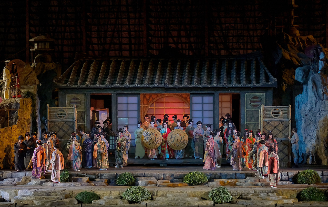 또 한 번의 도약은 1947년에 이뤄졌다. 체나텔로는 그리스 태생의 무명 소프라노를 오디션 했다. 폰키엘리의 <라 조콘다> 주역을 따낸 그녀가 역시 올해 탄생 100주년을 맞은 마리아 칼라스이다. 축제와 칼라스에 더해, 올해 아레나는 자신과 떼려야 뗄 수 없는 또 한 사람의 탄생 100주기를 기린다. 바로 이 도시가 무대인 불멸의 러브스토리 <로미오와 줄리엣>을 영화로 만든 감독 프랑코 체피렐리이다. 이날 밤 푸치니의 <나비부인>은 체피렐리의 연출을 다시 올렸다. 소박한 일본 시골의 정경을 펼칠 무대는 거대했지만, 체피렐리의 빈틈없는 계산으로 빈 곳이 보이지 않았다.