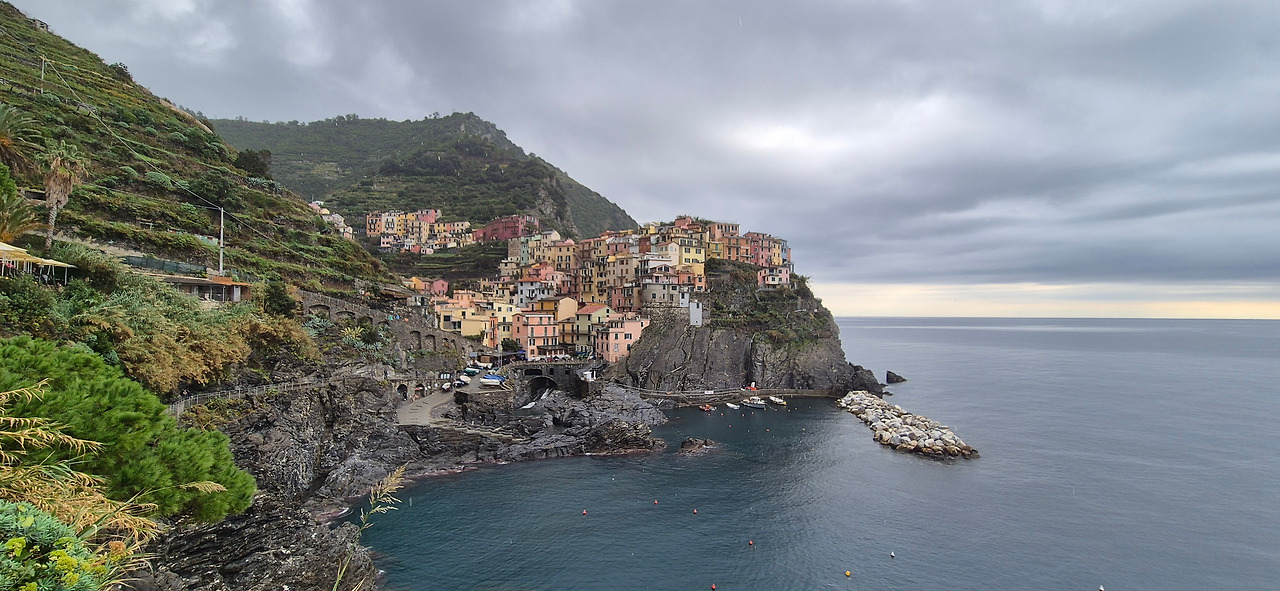 친퀘테레(Cinque Terre). 이탈리아 북서해안에 옹기종기 자리한 다섯 마을을 이르는 지명이다. 이런 곳은 경험상 화창한 날보다는 찌푸린 날 풍광이 더 멋지다. 예상처럼 먼바다에서는 마치 물뿌리개로 물을 주는 듯이 먹구름 아래로 비가 쏟아진다. 그 사이 어딘가는 햇볕이 내리쬐는가 하면 코앞에선 거센 바람에 정박한 배가 출렁인다. 절벽에 자리 잡은 사람마다 넘쳐나는 자기애(narcissism)를 카메라에 담는다.