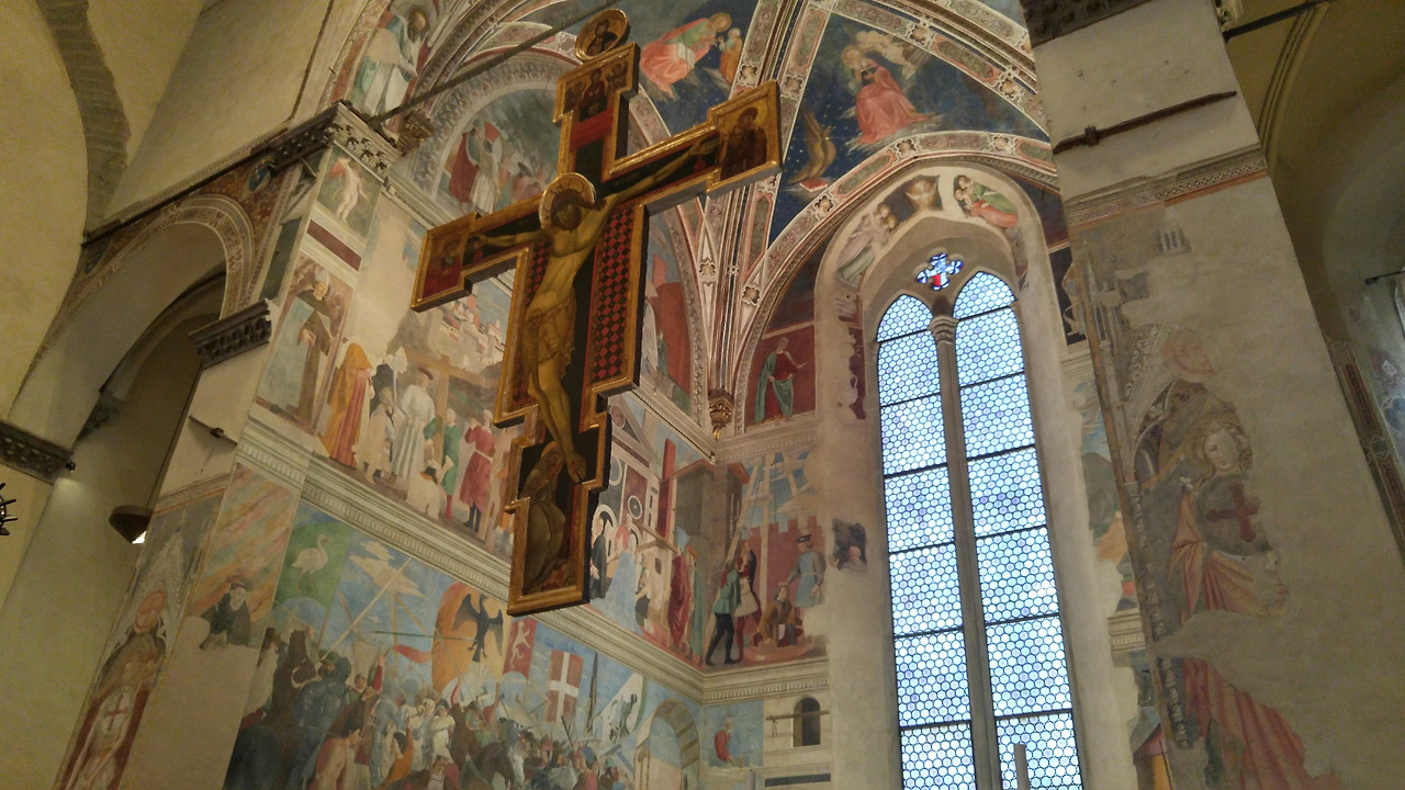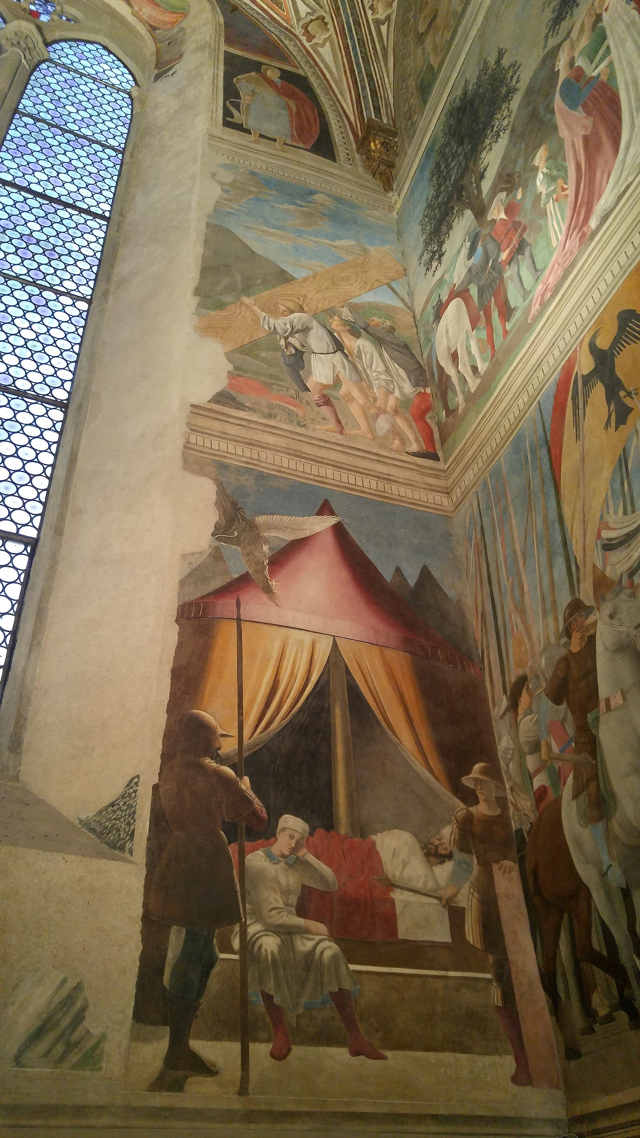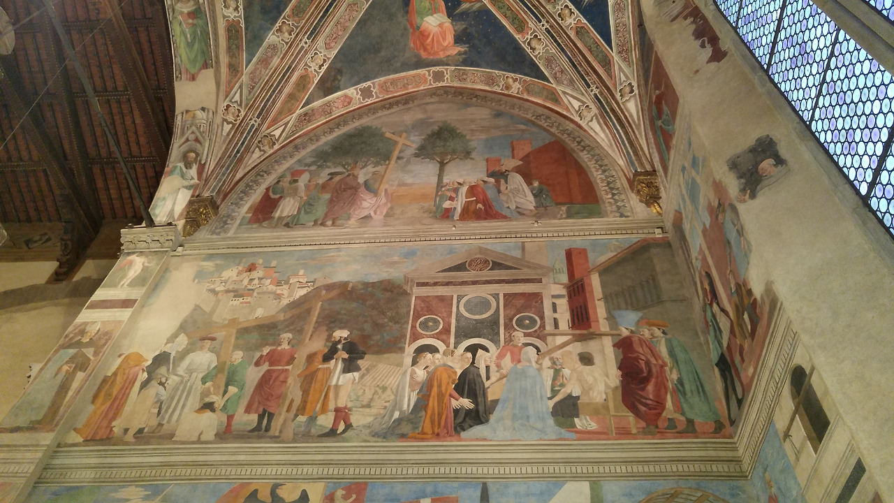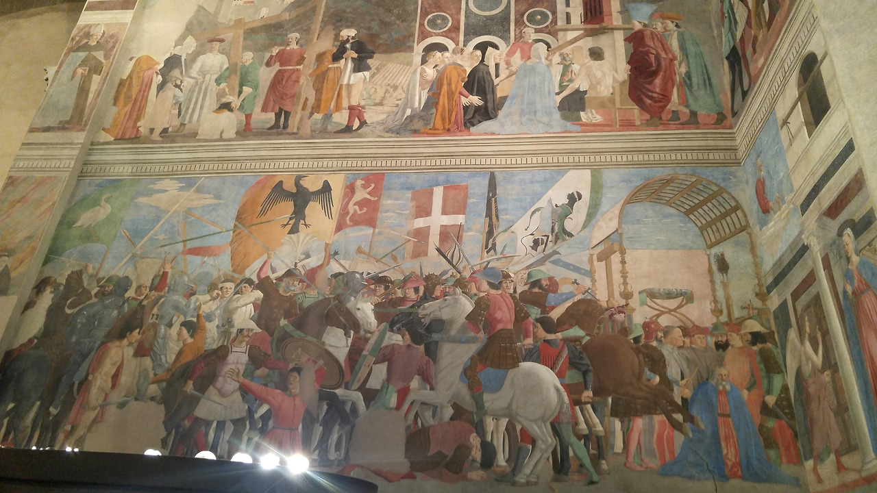 그러나 내가 아레초에 온 것은 귀도들 때문만은 아니다. 나는 피에로 델라 프란체스카의 그림이 있는 곳이라면 어디든 마다하지 않고 가보고 싶다. 아레초의 성 프란체스코 대성당에는 그가 그린 <진짜 십자가 이야기> 벽화가 있다. 제단 뒤 삼면을 둘러싼 대작의 줄거리는 야코포 보라지네의 <황금 전설>에 나오는 이야기를 토대로 한 것이다.