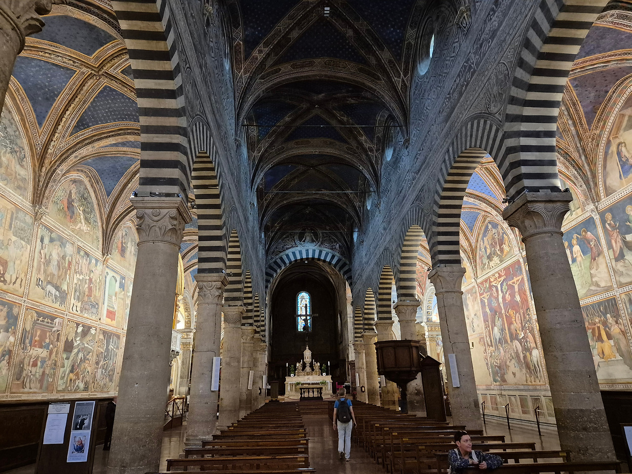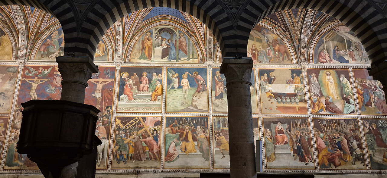 18세기 초 한 영국 여행자는, “원래 로마는 ‘종탑의 도시’였으나 미켈란젤로의 성 베드로 대사원 이후의 로마는 ‘돔의 도시’가 되었다”라고 말했다. 고딕(탑)이 르네상스(돔)로 바뀌는 과정을 얘기한 것이다. 이 말대로라면 돔을 갖지 못한 산 지미냐노는 중세의 박제이자 타임캡슐이다. 그 점이 더 많은 발길을 불러 모으는 것이리라. 프란코 체피렐리의 자전적 영화 <무솔리니와 차 한 잔>에서 영국 할머니들은 산 지미냐노 두오모의 벽화를 지키려고 목숨까지 건다.