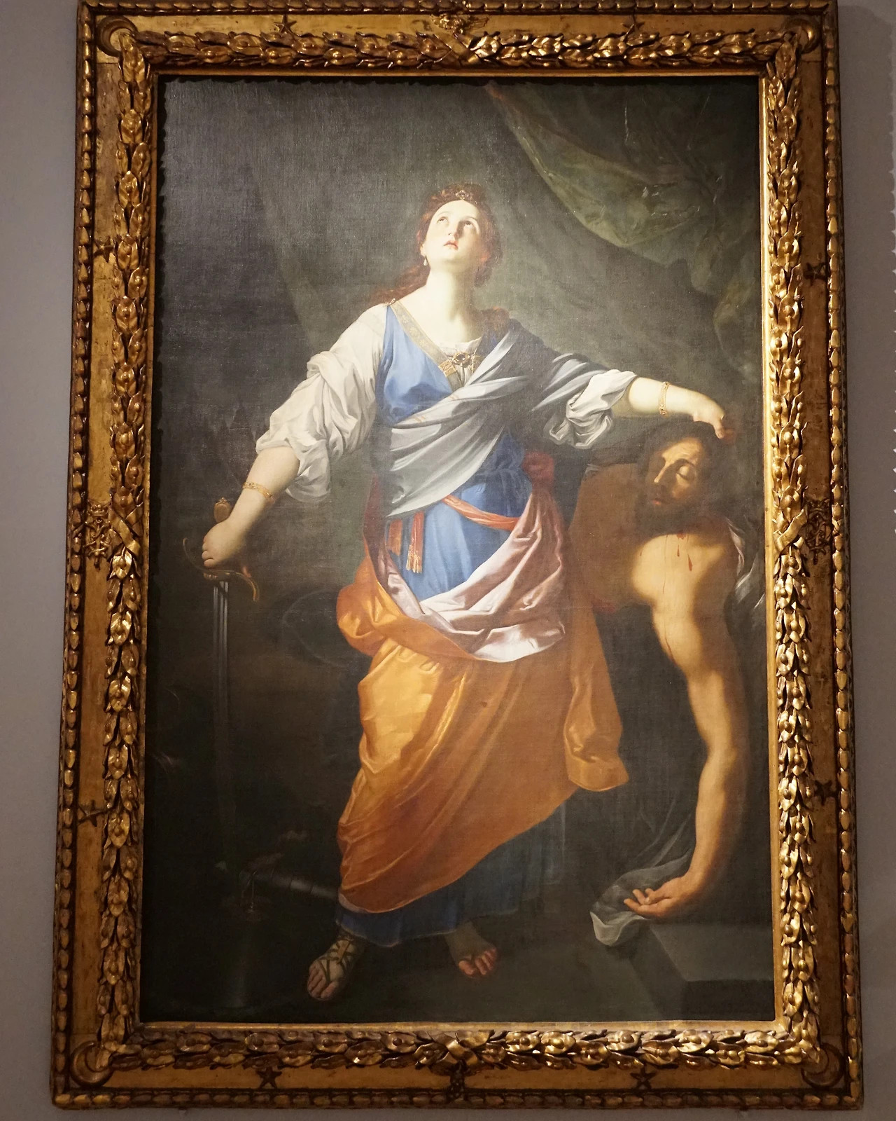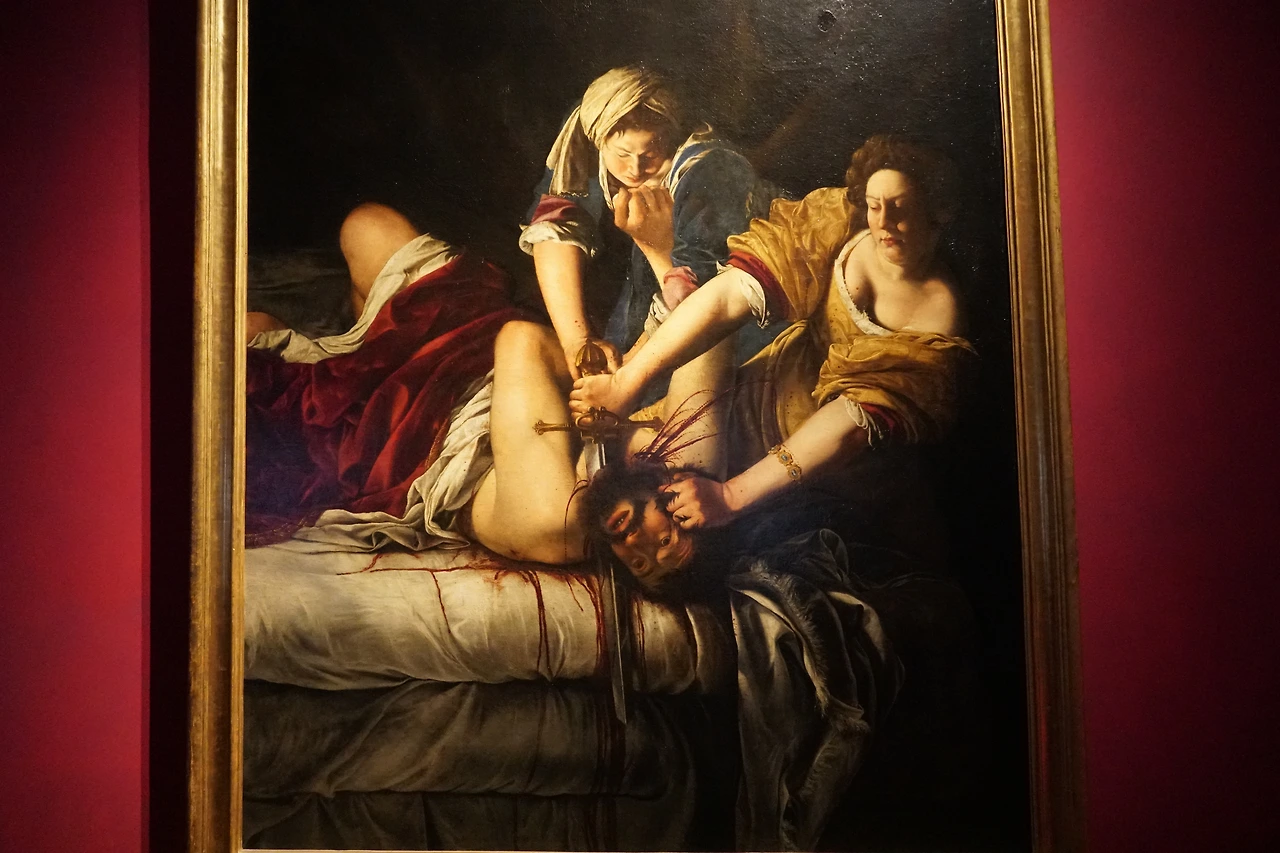 그 가운데 흥미로운 것은 로마 카피톨리니 박물관에 걸린 귀도 레니(1575-1642)의 그림이다. 같은 교황의 영향권에 있었지만, 볼로냐 태생의 레니는 카라바조의 부담스러운 리얼리즘이 아닌 고전적인 우아함을 보여준다. 그리스 여신이나 성녀에게 어울릴 법한 옷을 입은 유딧은 메두사의 머리를 벤 페르세우스처럼 하늘을 쳐다보며 인정(認定)을 구한다.