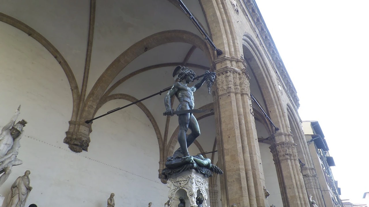 첼리니는 1545년 12월 그의 나이 45세에 메디치 대공 코시모 1세로부터 시뇨리아 광장 로지아 데이 란치에 놓을 <페르세우스 상>을 주문받는다. 광장에는 이미 첼리니가 존경하는 선배 도나텔로의 <홀로페르네스의 목을 베는 유디트>와 미켈란젤로의 <다윗>이 당당하게 서 있었다. 오만한 적장을 처단하는 열혈 여인과 자신만만하게 거인을 바라보는 소년 용사의 모습에 괴물 메두사를 퇴치한 신화의 영웅 페르세우스가 더해지는 것이었다.