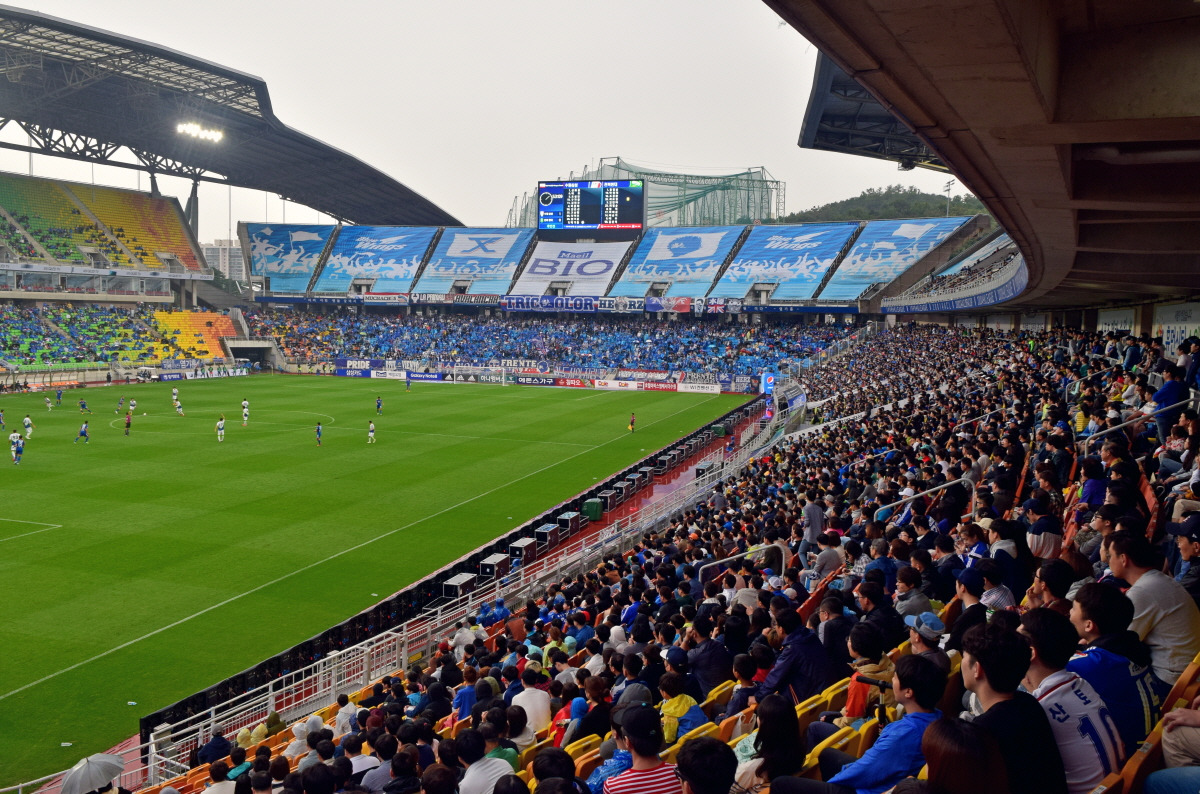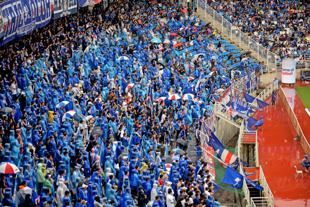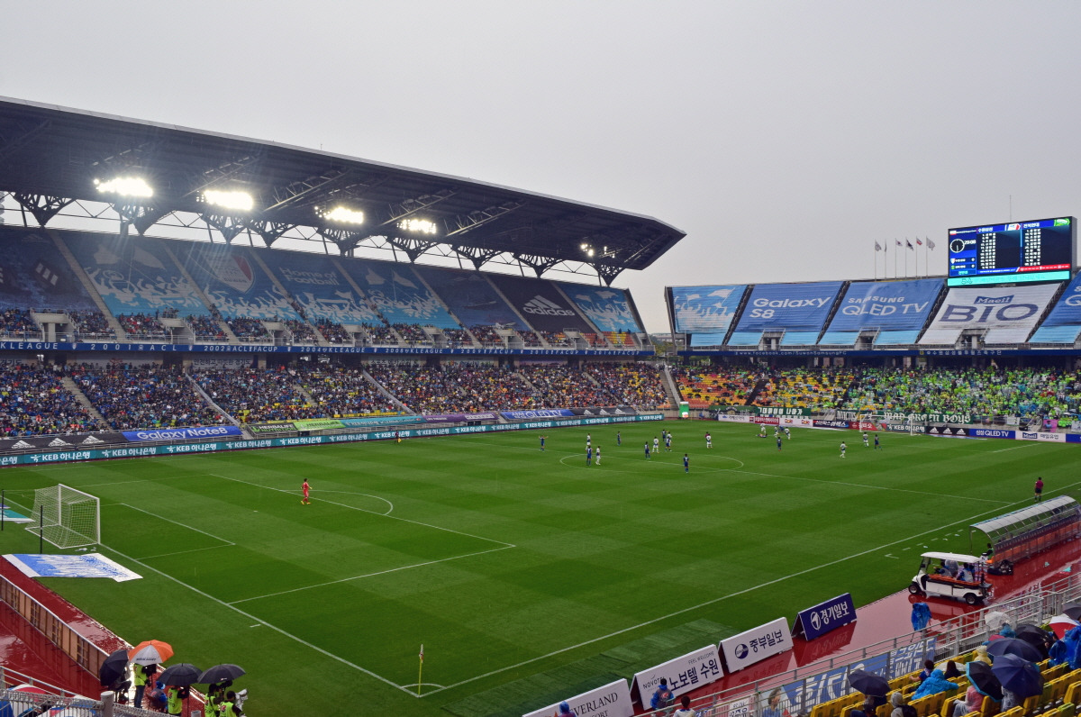 아시다시피 날씨는, 정확히 말하면 비와 눈 정도는 축구에 대수로운 영향을 미치지 못한다. 웬만큼 심하다 싶을 정도의 강우, 강설로는 경기를 취소시킬 수 없다. 폭우나 폭설로 경기가 열리지 못한다고 해도, 그건 경기 자체에 지장을 주기 때문이라기보다 관중의 방문과 입장에 불편을 주기 때문이라고 생각할 수 있을 정도다. 하지만 그런 걱정 자체가 기우에 불과한 곳도 더러 있으니 바로 한국을 대표하는 축구도시 수원이 그렇다. 내가 경기장을 찾은 날은 민족 대명절을 포함하는 장기 연휴가 시작되는 날이었고, 하루 종일 비가 내렸음에도 수원월드컵경기장의 분위기에는 별다른 악영향을 주지 못했다.