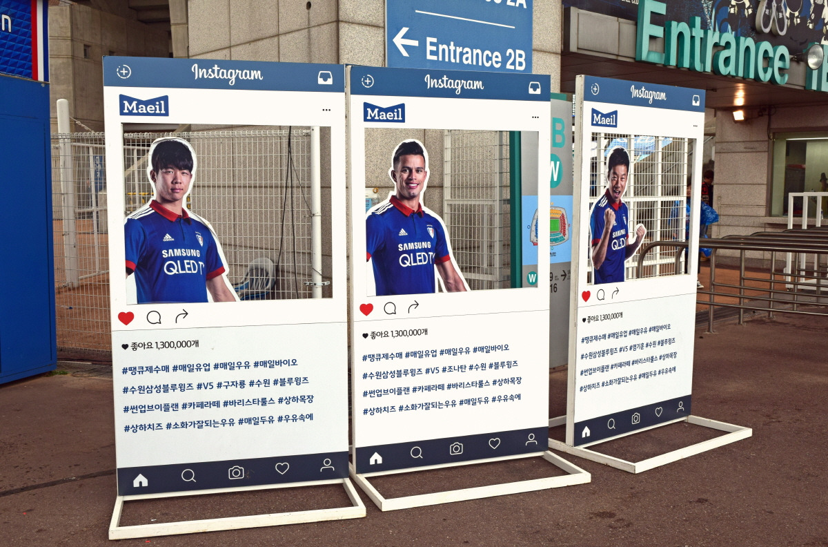 한쪽 출입구에 설치된 염기훈, 조나탄, 구자룡의 인스타그램 포토월이 귀엽고 앙증맞은 느낌이라면 레전드들의 위용은 카리스마가 대단하다. 이런 모습은 K리그 내의 다른 클럽들도 벤치마킹하면 좋겠다. 꼭 많은 돈을 들여 웅장하게 꾸밀 필요는 없을 것 같다. 경기장 한쪽 외벽에 클럽의 과거를 빛냈던 선수들의 그림과 이름, 등번호를 새겨 놓는 것 정도로 충분하다.
