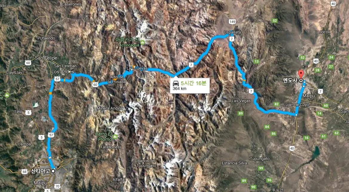 산티아고에서 약 400km거리 안데스 너머에 자리한 도시.