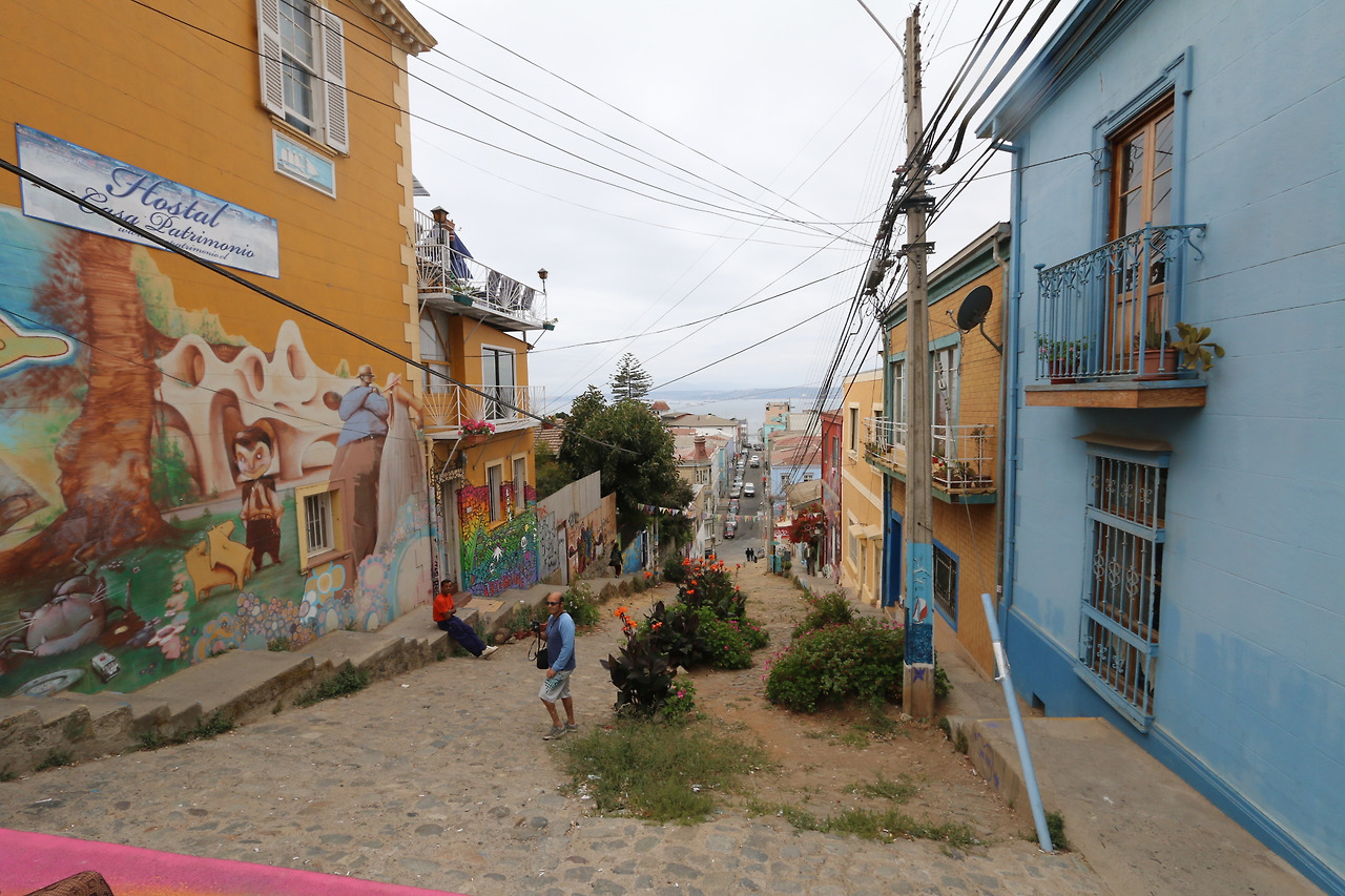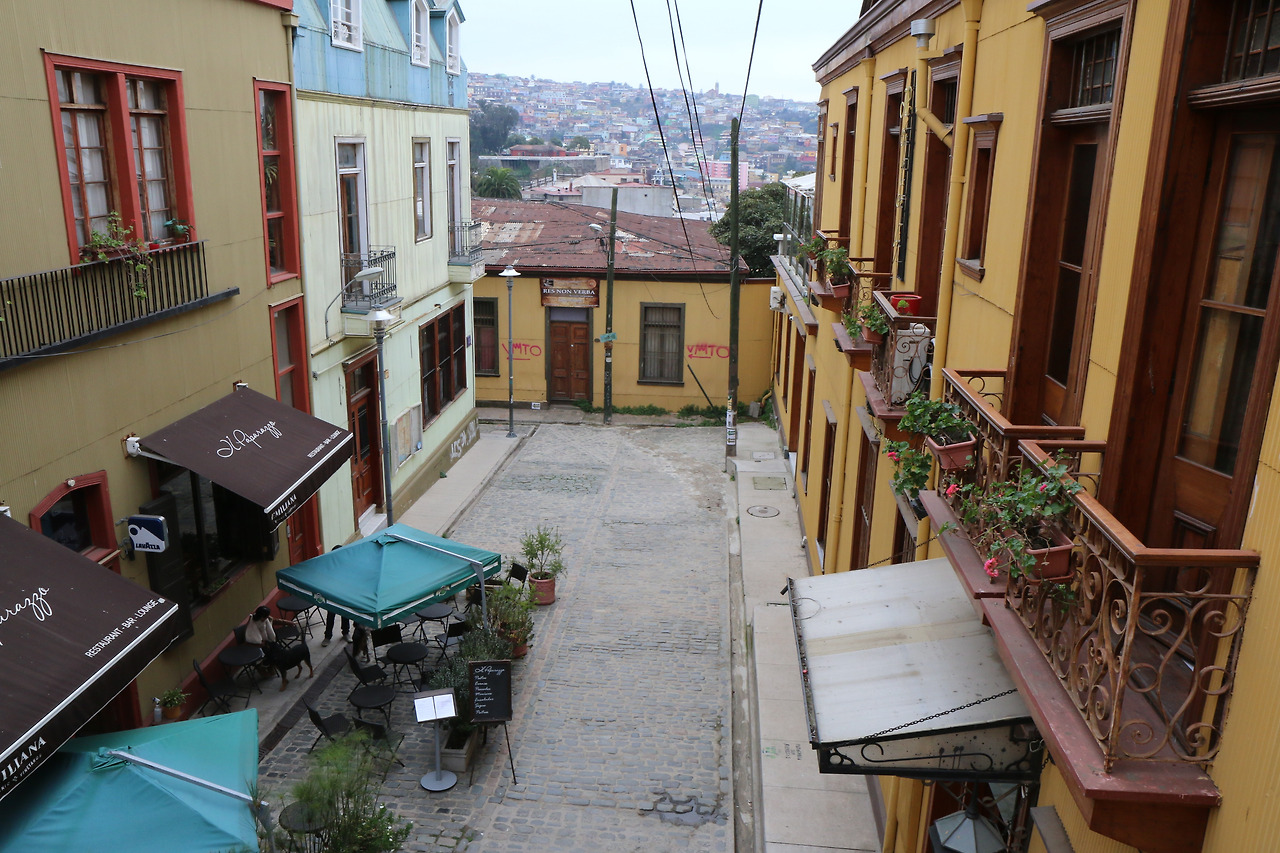 아센솔에서 내리면, 전혀 다른 경관을 마주합니다. 오랜세월 매연에 찌든 대리석 외관 오피스 건물이 즐비한 아랫동네와는 달리 밝은 형형색색 주택, 호텔, 식당들이 여행자들을 맞습니다. 이름난 식당들은 사전 예약 없이는 자리 얻기가 영 수월치 않습니다. 어떤 근심거리와 함께 발파라이소를 방문했다면, 혹시 식당 입구에서 빈자리가 없다는 안내를 받더라도, 기죽지 말고 잠시 구경한다고 하며 이층 테라스 자리로 올라가면 됩니다. 탁 트인 발파라이소만 전경을 잠시 바라보는 것만으로도 마음속 근심이 한결 가벼워질 겁니다.