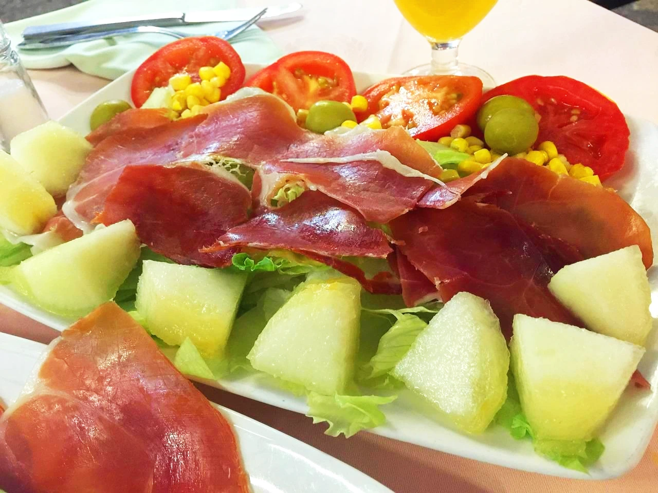 그리곤 하몬과 멜론(Jamón con Melón, 4,50유로), 하몽 샐러드(Ensalada Jamonísima, 5.50유로)를 주문했다. 하몬의 질로 따지면 그렇게 좋은 편은 아니었지만, 서민적인 가격에 여러 종류의 하몬을 시켜먹을 수 있다는 게 매력. 굶주린 여행자에겐 맥주와 하몬, 멜론을 5천 원의 가격에 배부르게 먹을 수 있어서 좋았다.